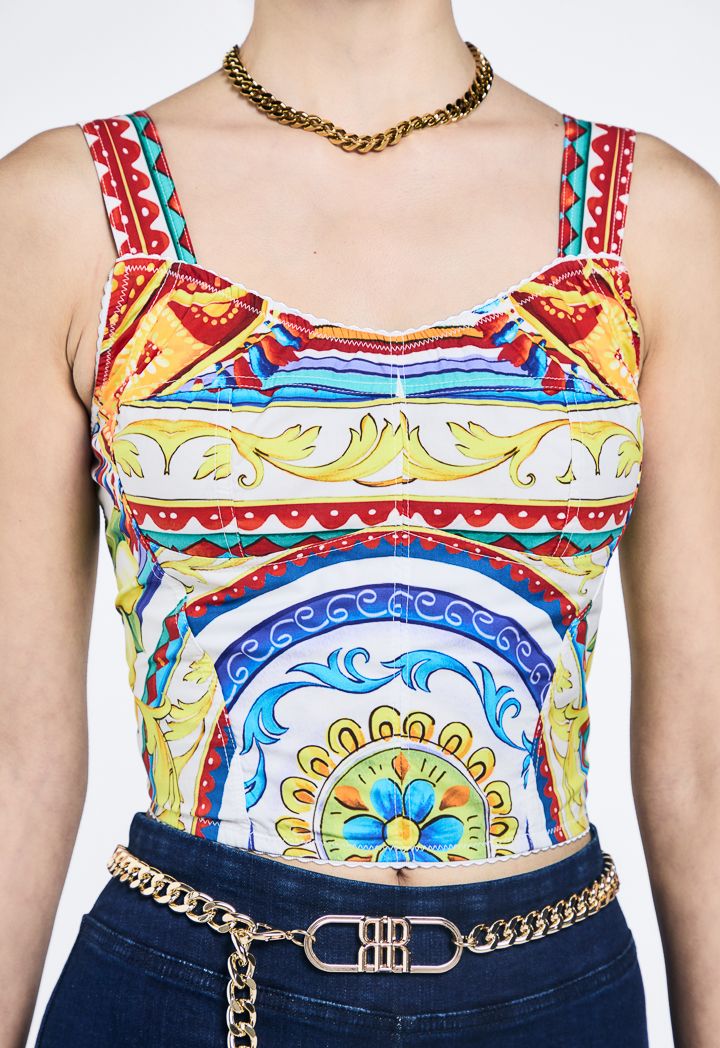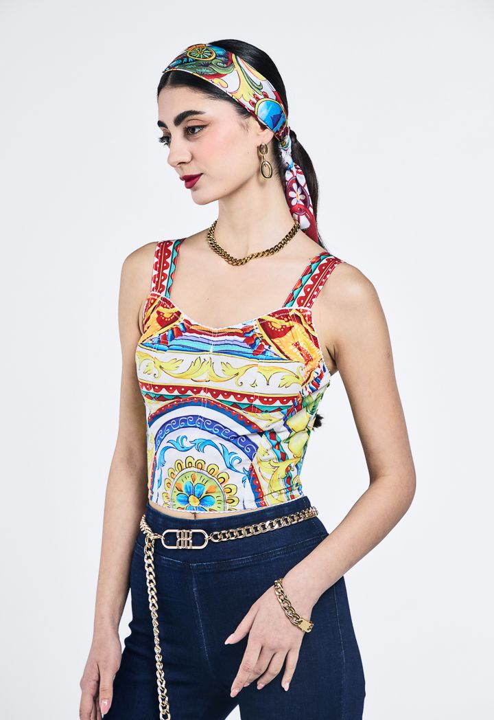 Multicolor Print Cropped Top |