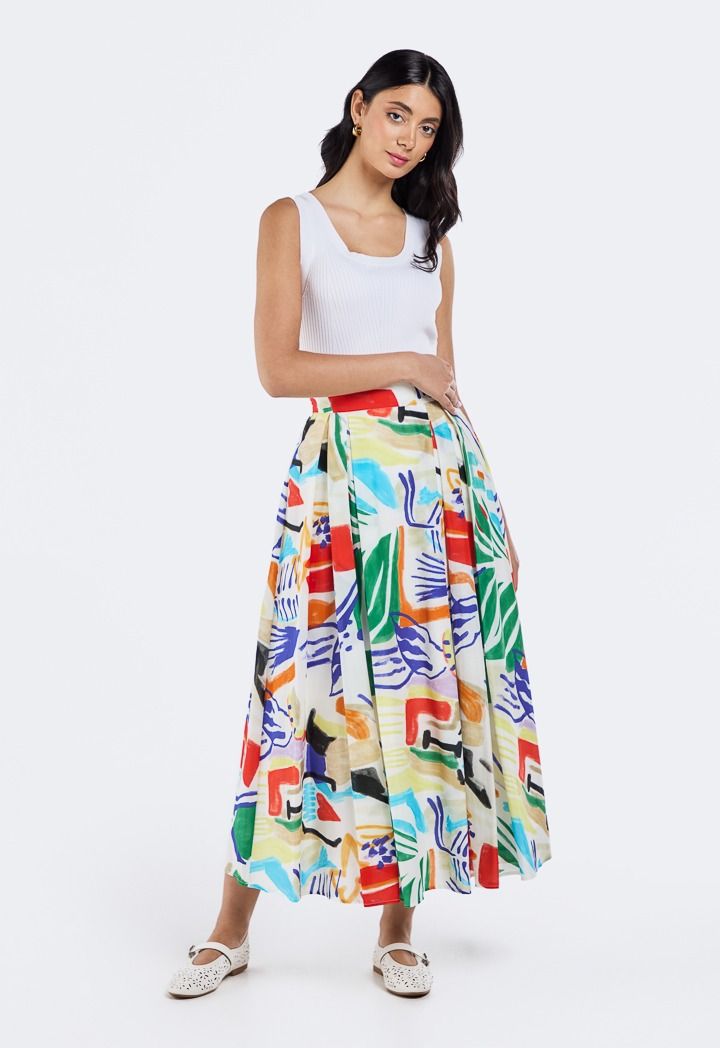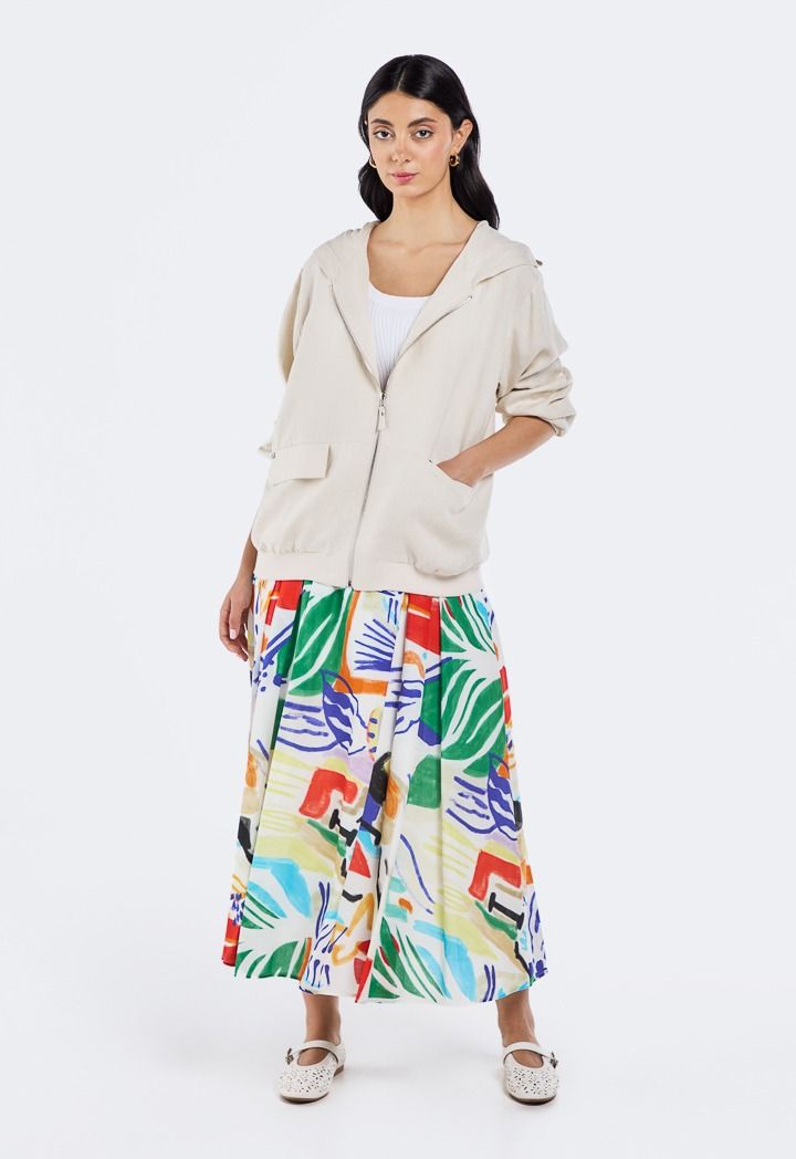 Design: Flared, Multicolor, Pleated, Attached Lining