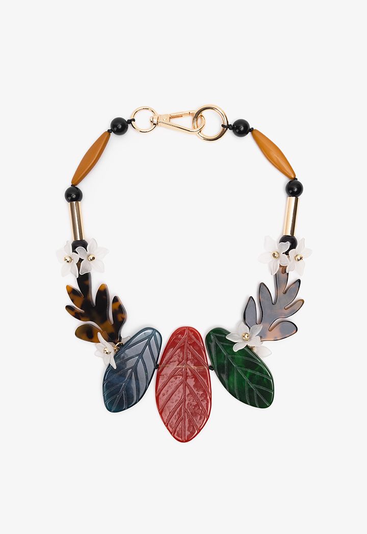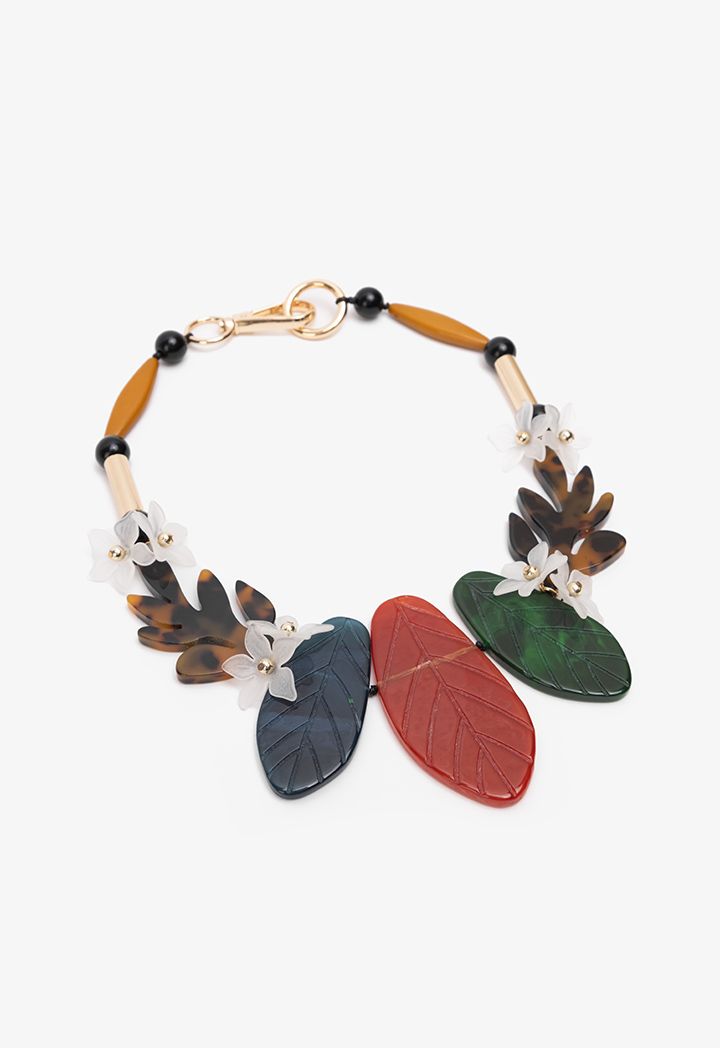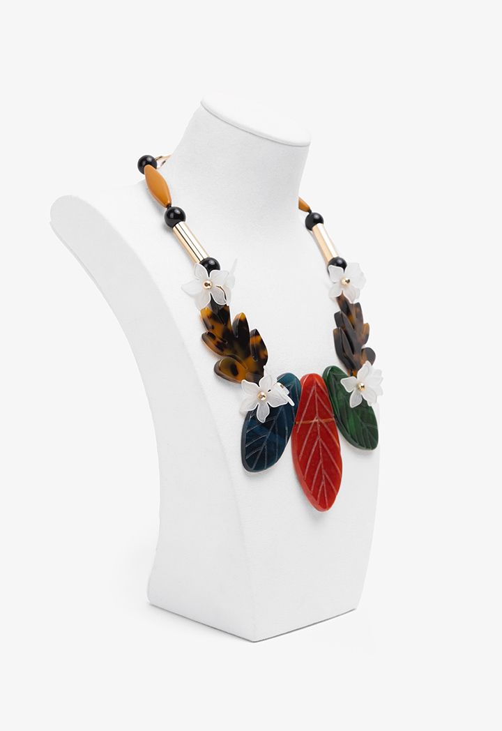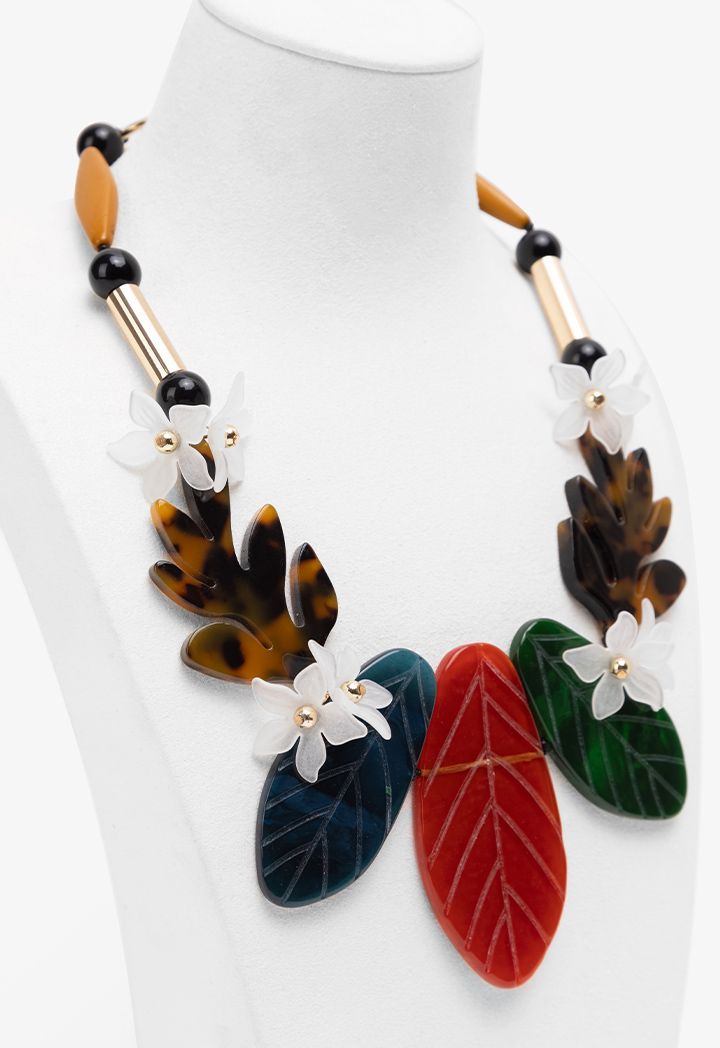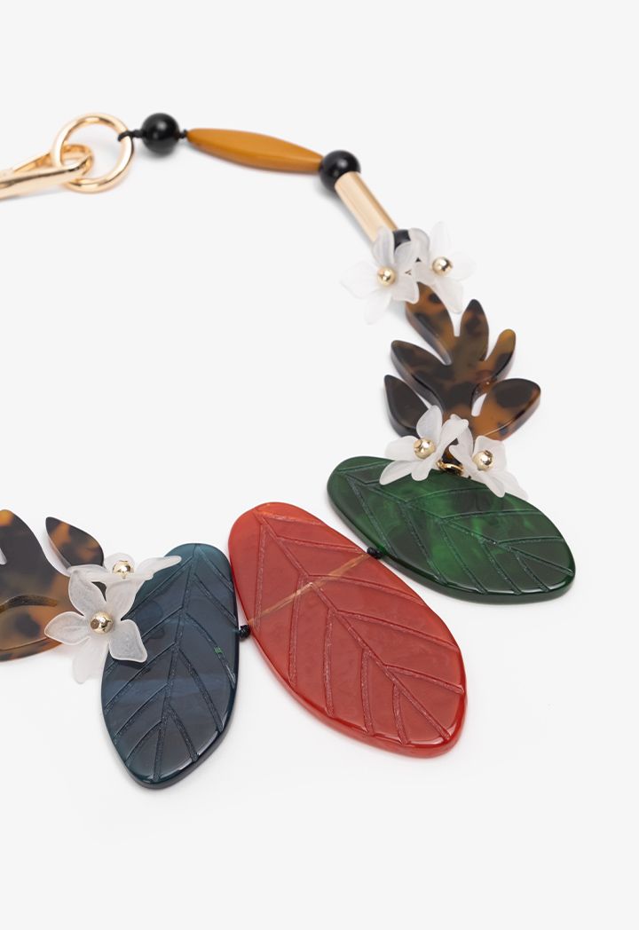 Expand your collection of necklaces with this multicolored leaves and floral necklace.