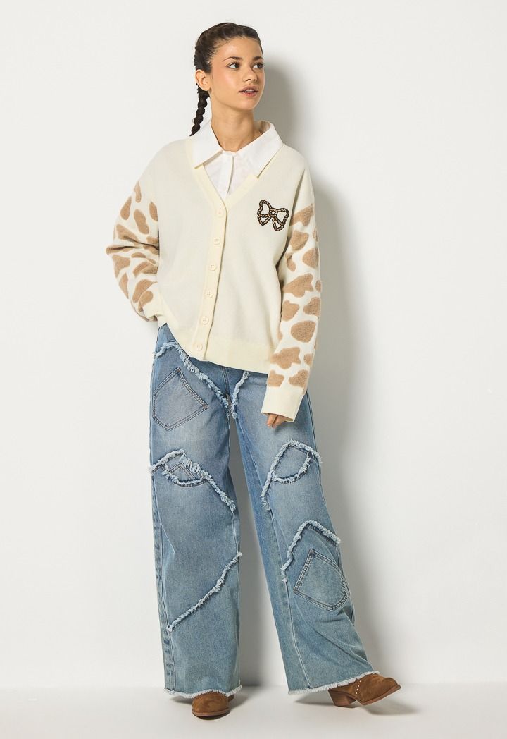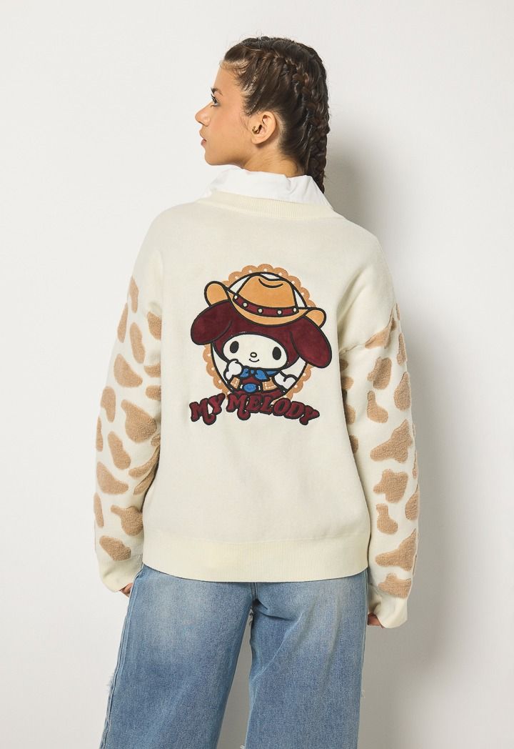 Cute cardigan with My Melody embroidered character, girly and trendy.