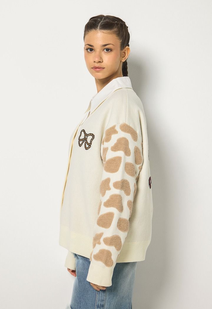 Design: Knitted, Contrast, Patches, Embroidered, Fleece