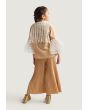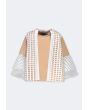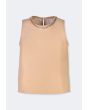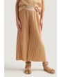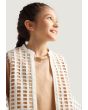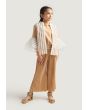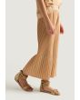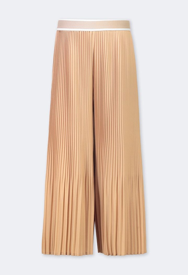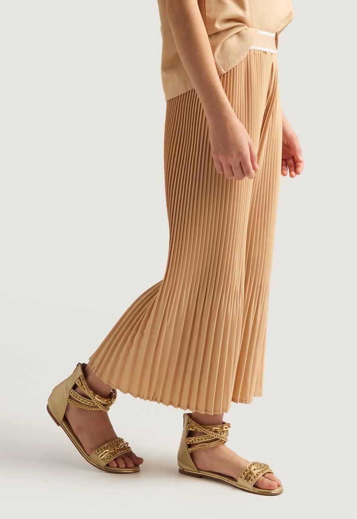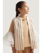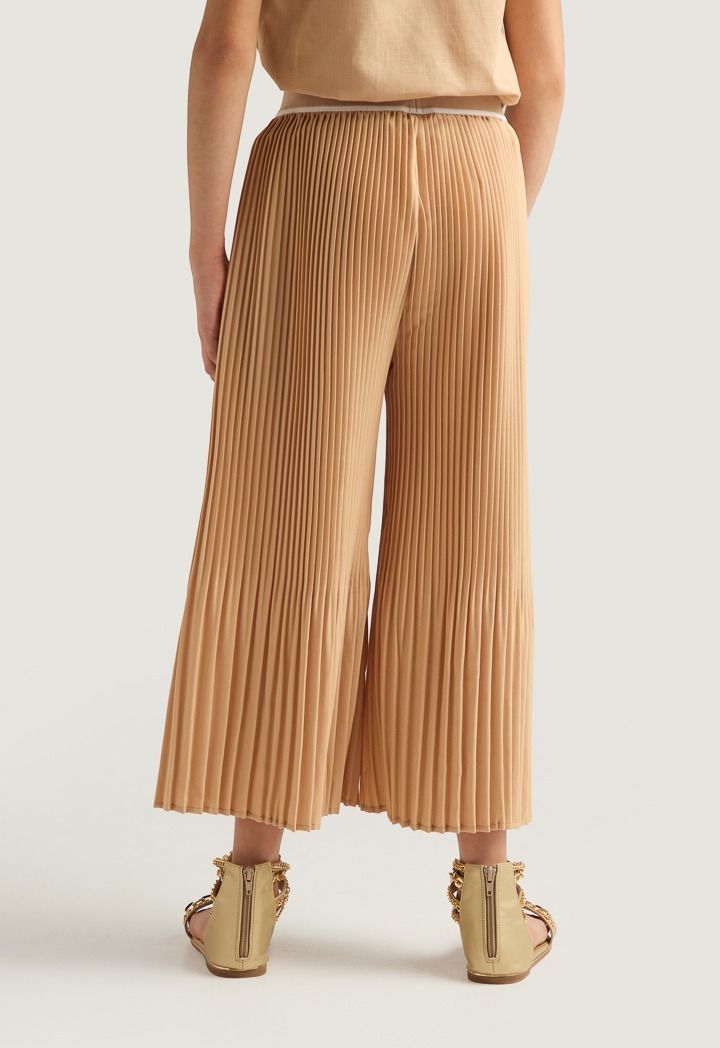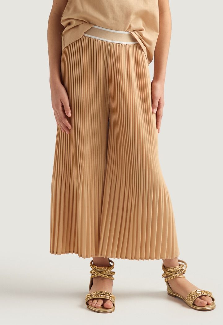 A unique set that features a net jacket, solid sleeveless top and a pleated pair of pants.