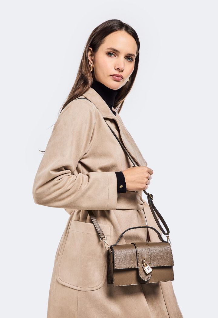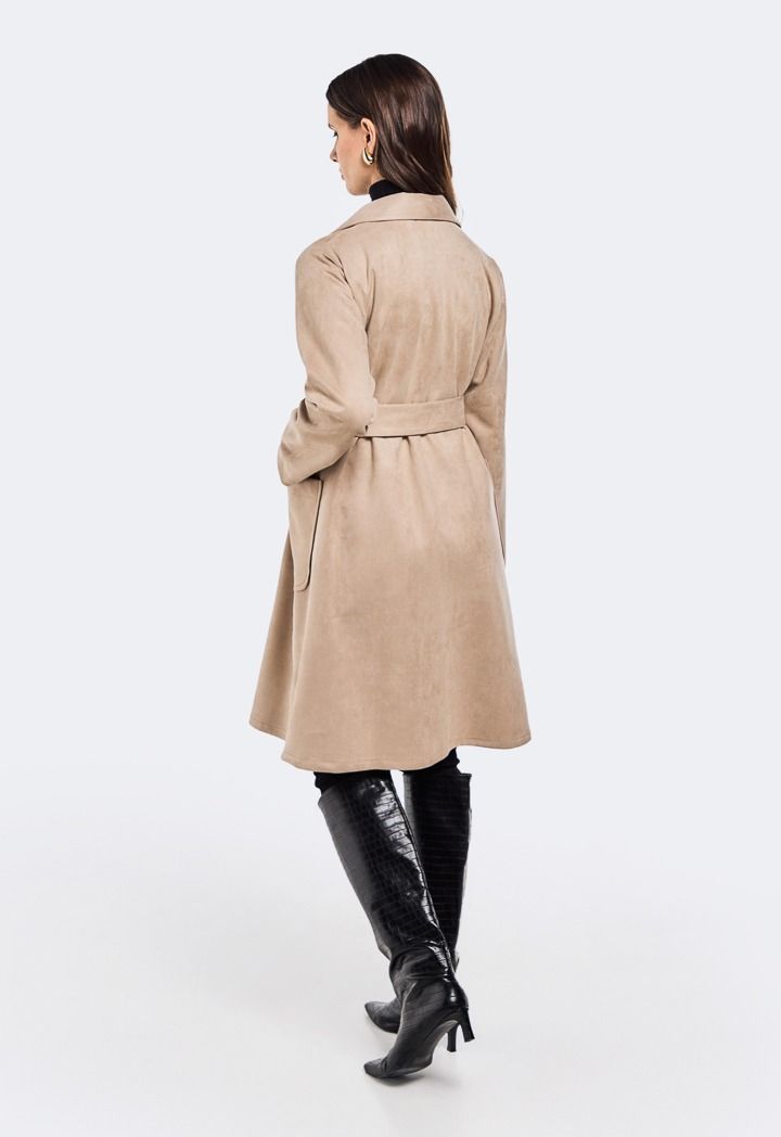A stylish coat that is fit for your winter outfits thanks to its suede design.