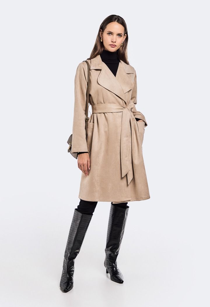 Design: Suede, Belted, Side Pockets