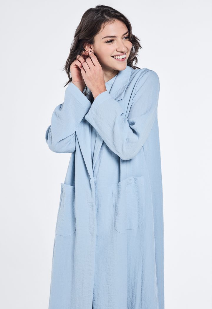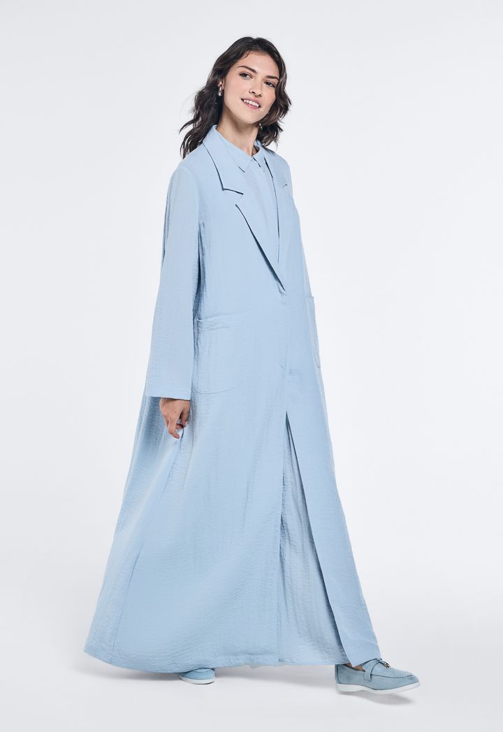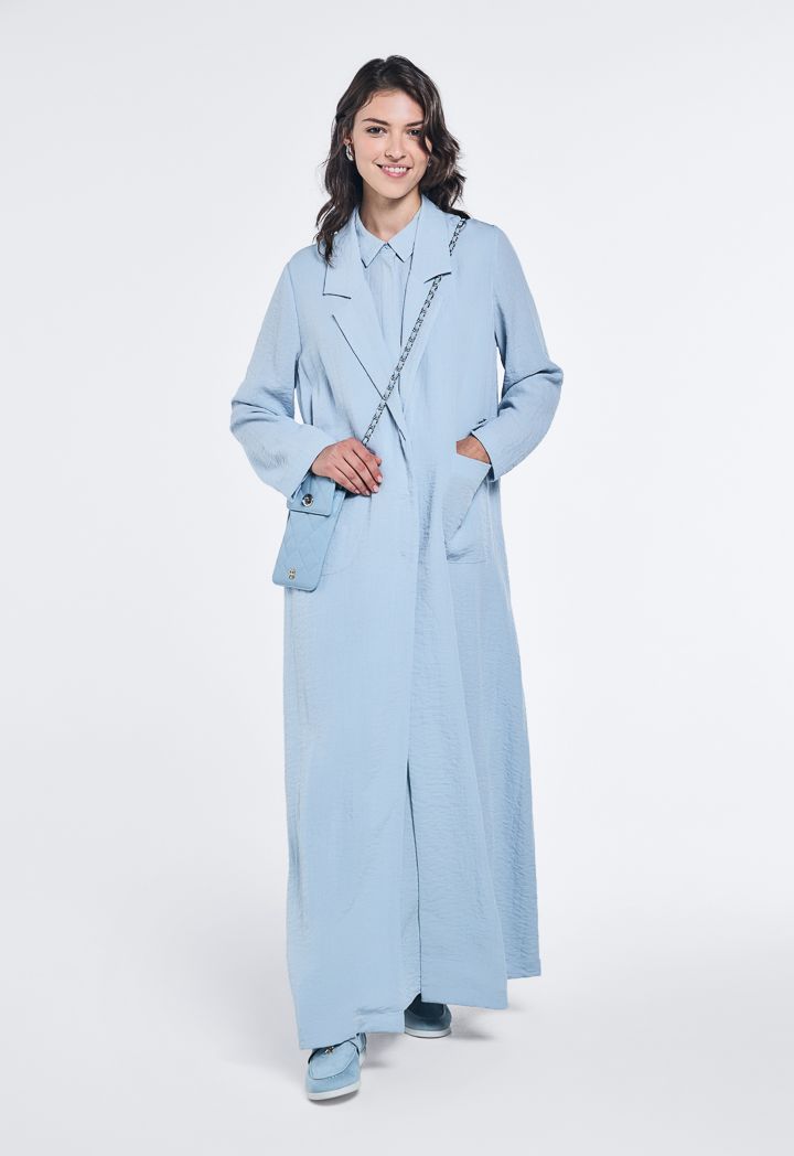 Notched Collar Crinkled Abaya |