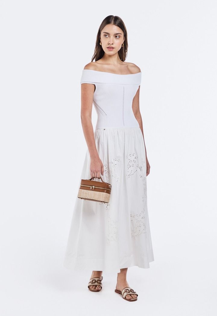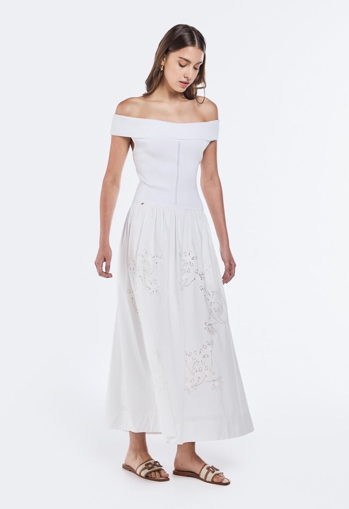Off Shoulder Lace Embroidered Dress |