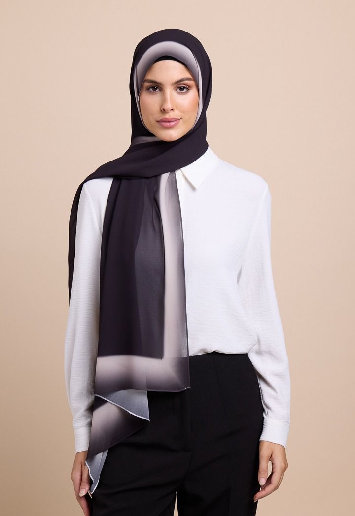 A unique hijab that features an ombre shayla design.