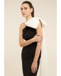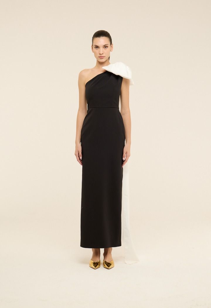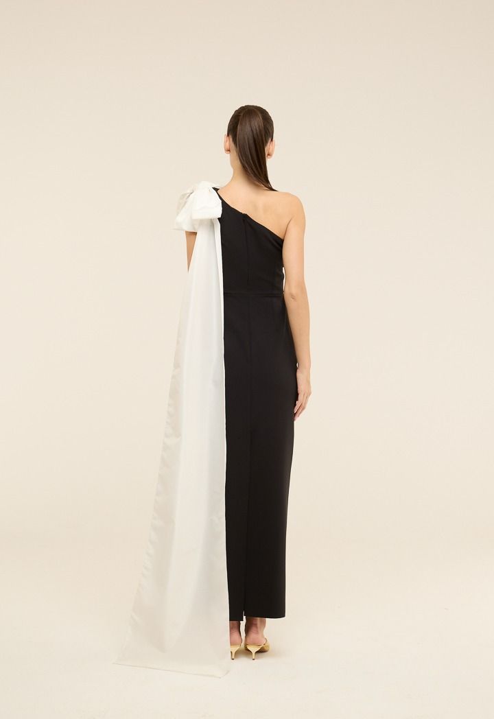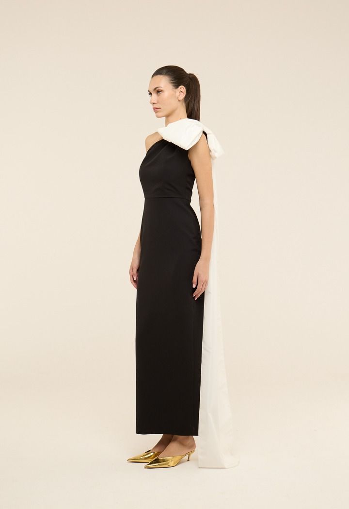 The one-shoulder design adds a touch of drama, while the bow detail on the shoulder adds a feminine touch. Perfect for formal events, this gown exudes sophistication and glamour.