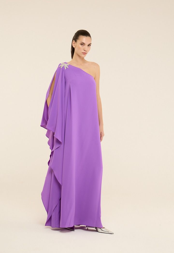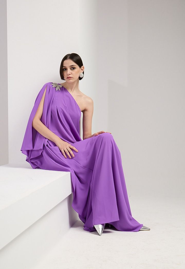 The one-shoulder design adds a touch of drama, while the bow detail on the shoulder adds a feminine touch. Perfect for formal events, this gown exudes sophistication and glamour.