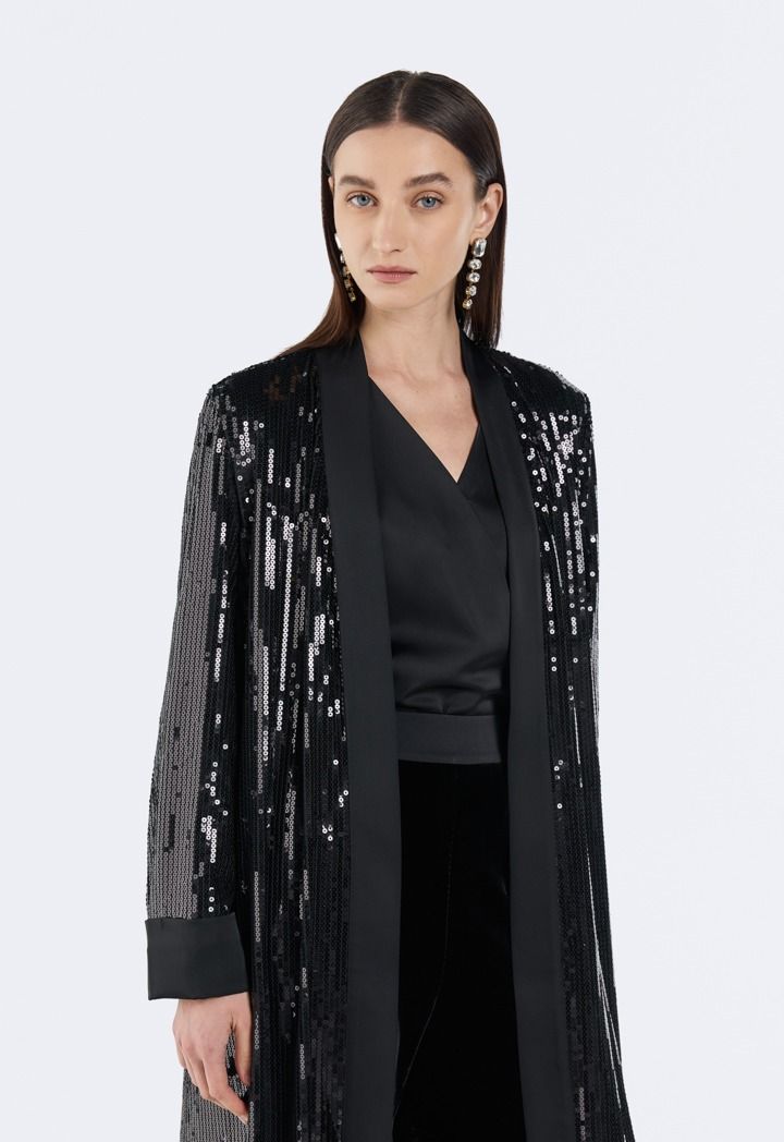 Drape yourself in glamour, the shimmering sequins make this abaya a must-have for evening sophistication.
