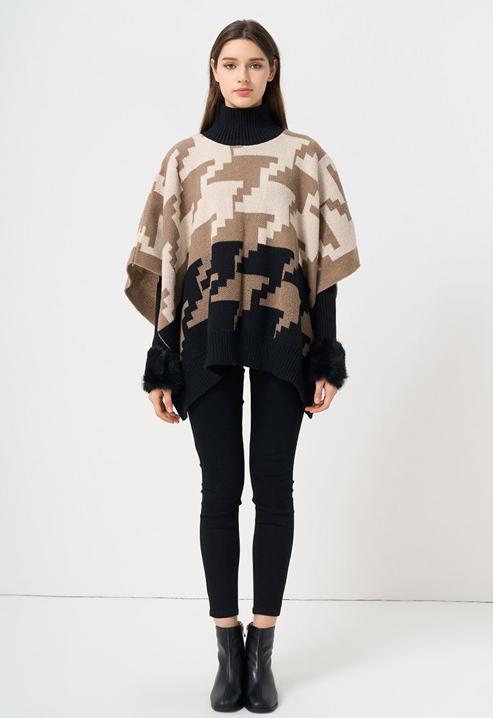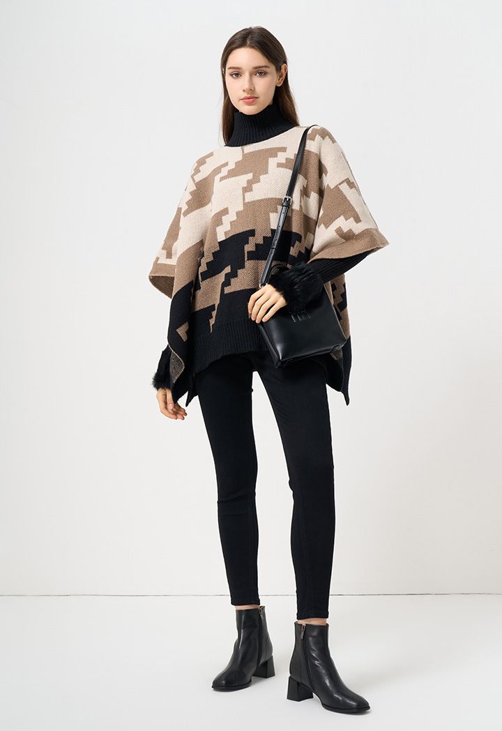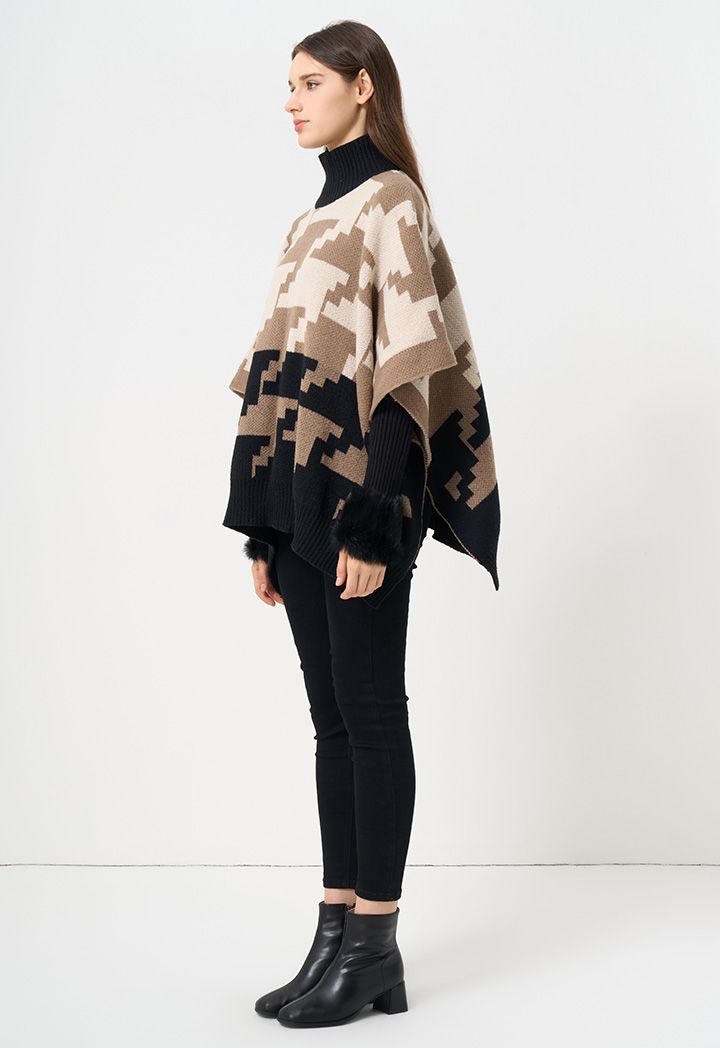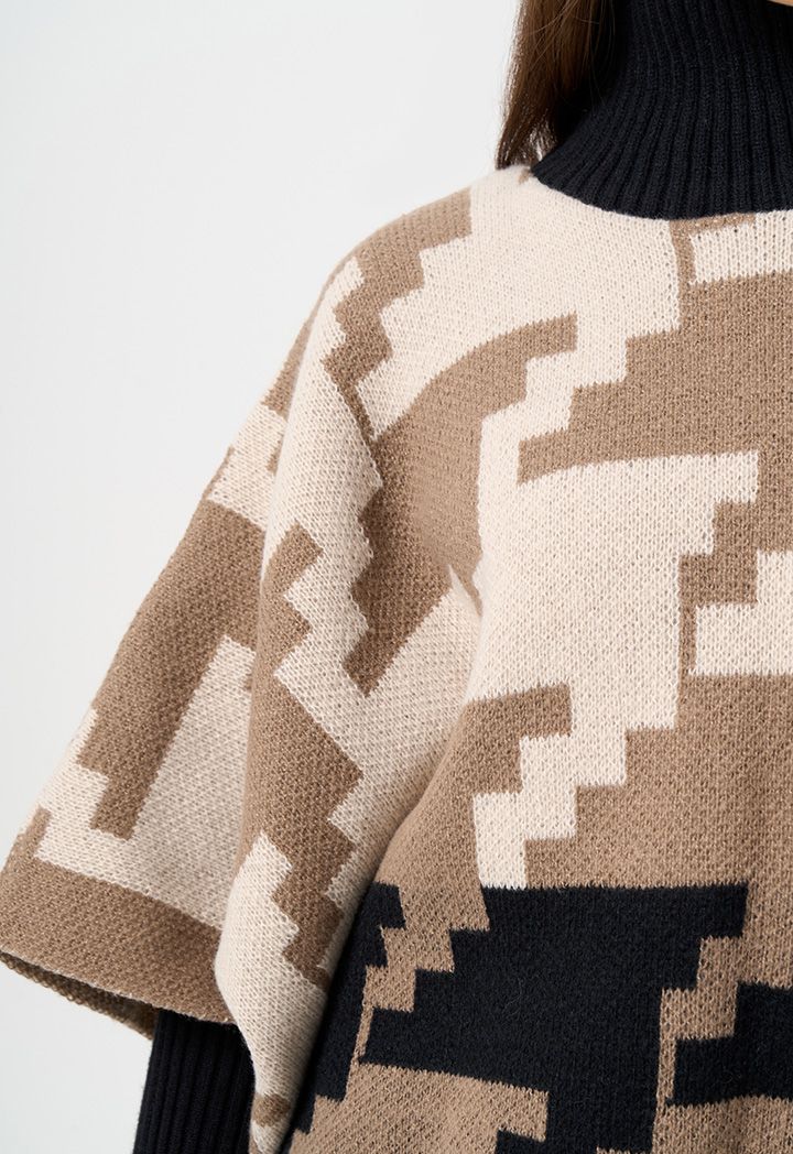 A woven winter poncho that features a comfortable design thanks to its open hems and warm fabric.