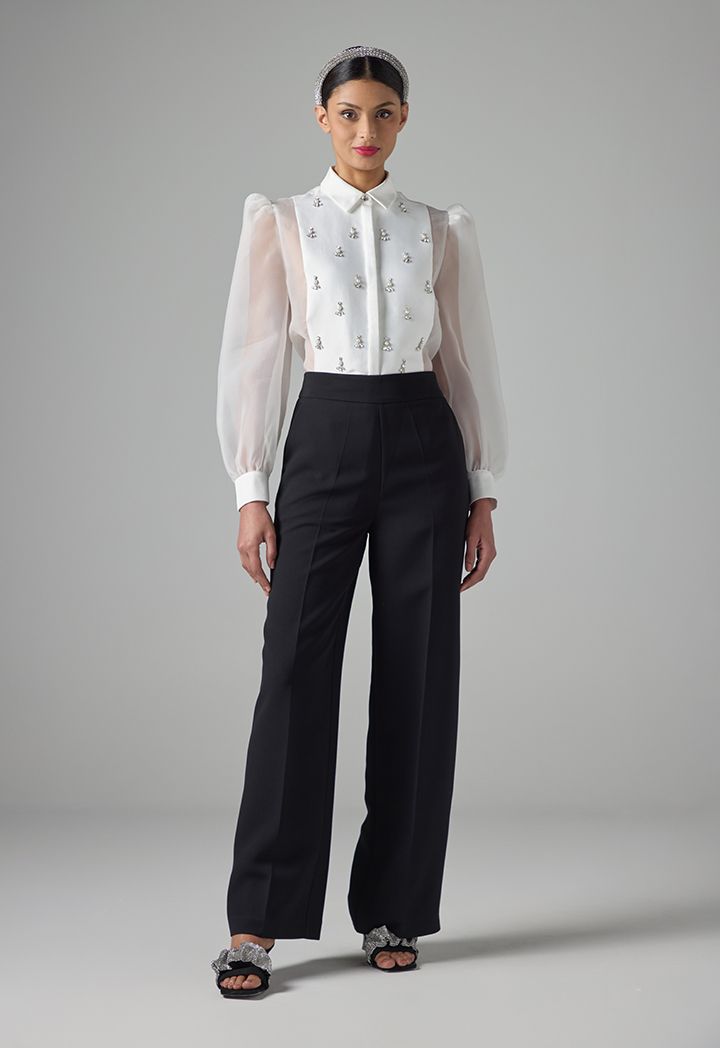 Get the elegant, chic look with this Shirt design with organza details and Crystal embellishment for a more feminine, exquisite appearance.
