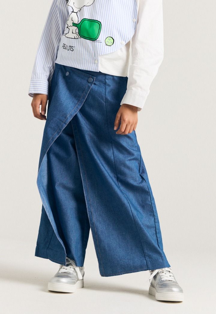 Stylish overlay snap buttoned waist trousers, cute when paired with a shirt or jumper.
