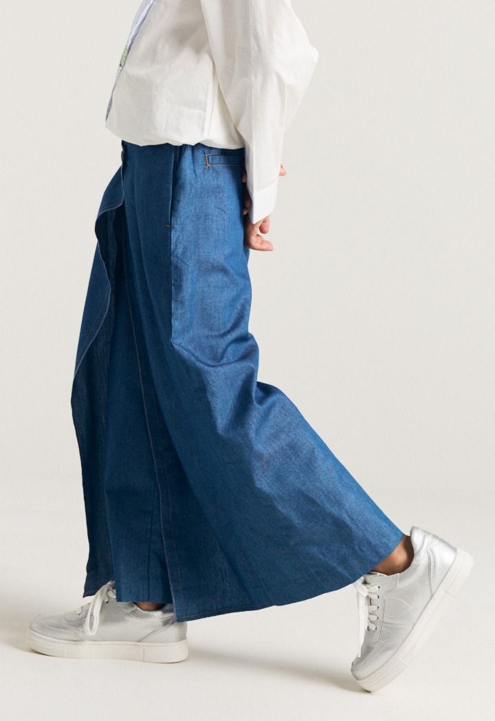 Design: Solid, Tencel, Pockets, Overlay Buttoned Waist, Wide Legs