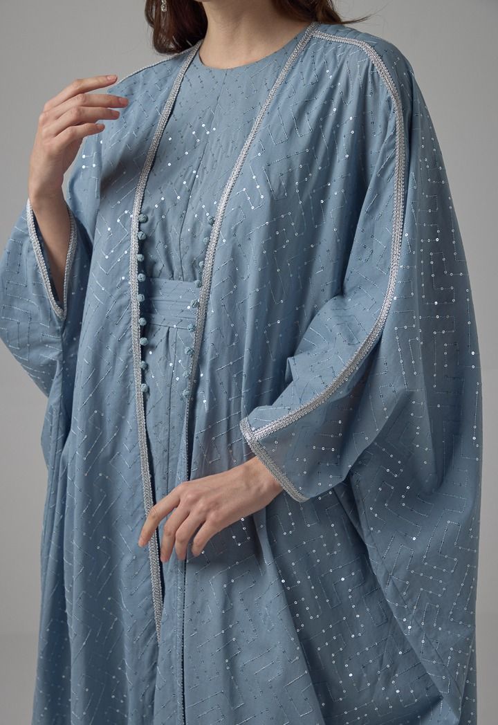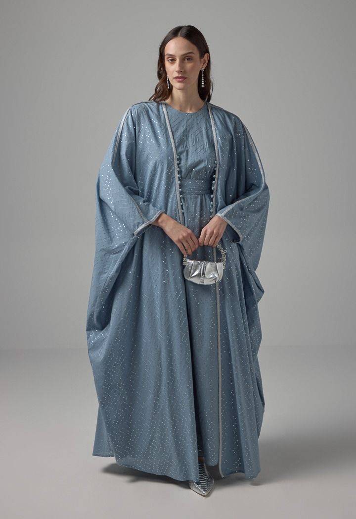 Elevate your wardrobe with the sophisticated elegance of this abaya . Step into timeless style with this stunning abaya that exudes charm and confidence.