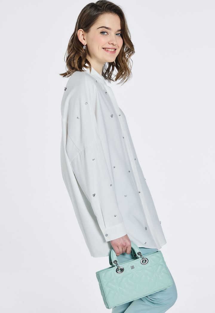 Oversized Crystal Embellished Shirt |