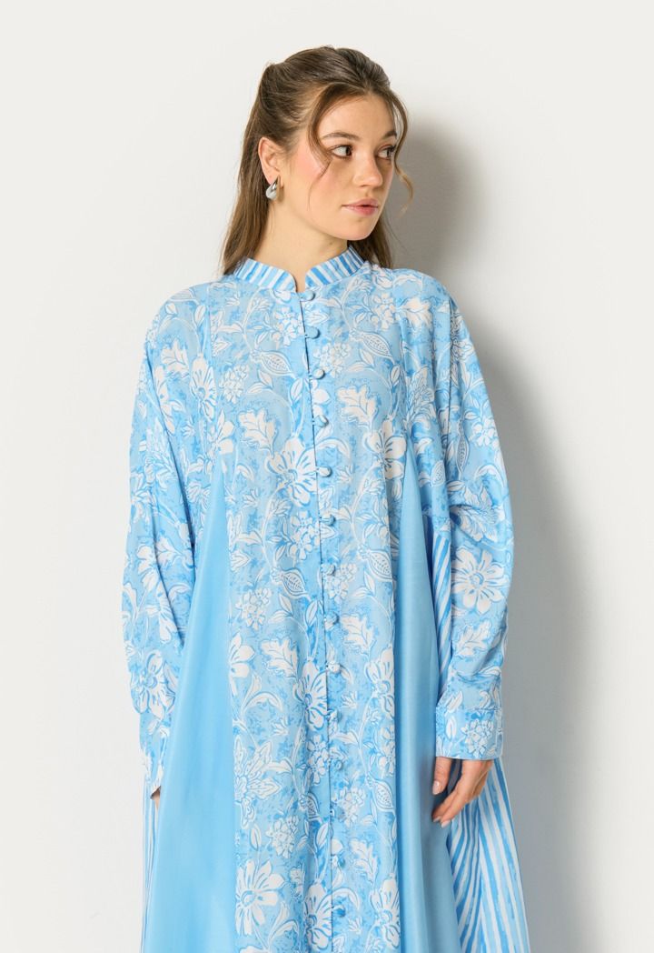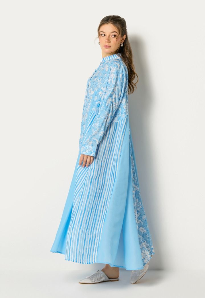 A loose dress with floral and stripe prints that moves beautifully, making it your go to choice for a comfy yet eye catching look in Ramadan and beyond.