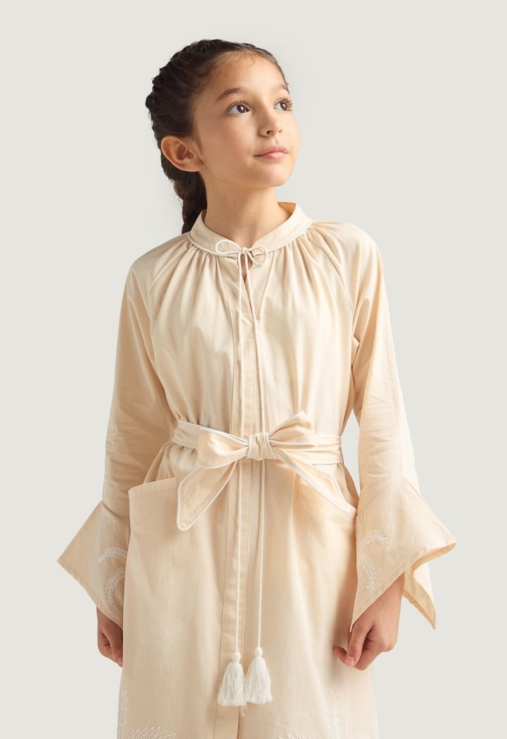 A rustic and embroidered dress that carries the beauty of it in its simplicity plus it would be the perfect addition to your daughters closet.
