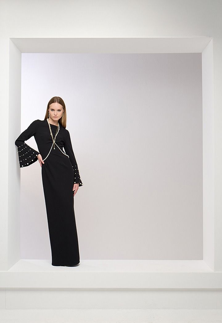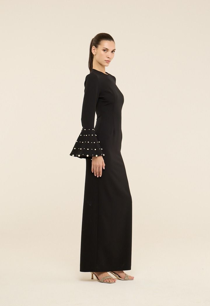 Indulge in pure luxury with this gown dress. Adorned with intricate pearl and crystal embellishments, it exudes timeless glamour. Pair with sparkling jewelry for a captivating red-carpet look.