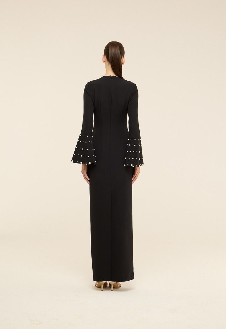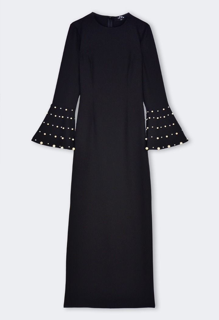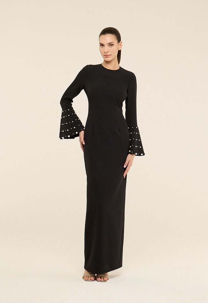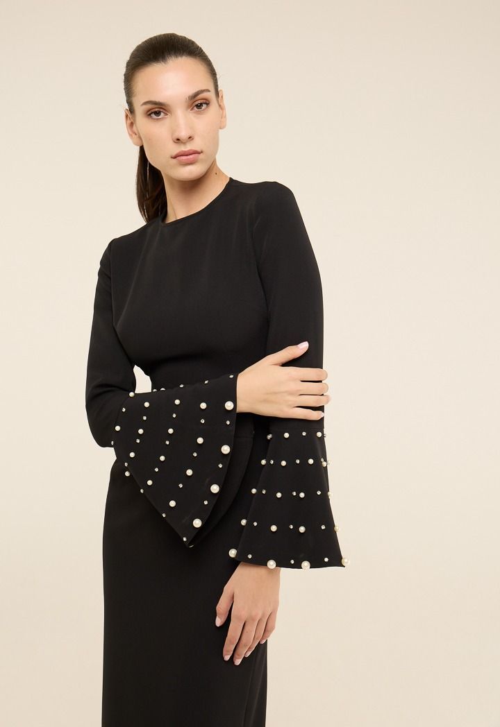 Design: Solid, Pearl and Crystal Embellished, Bodycon, Back Slit