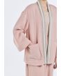 A touch of sparkle! Pearls enhance the crinkled kimono for a timeless, feminine style.