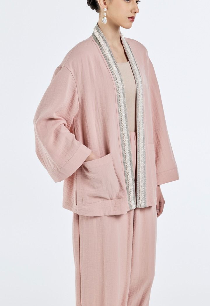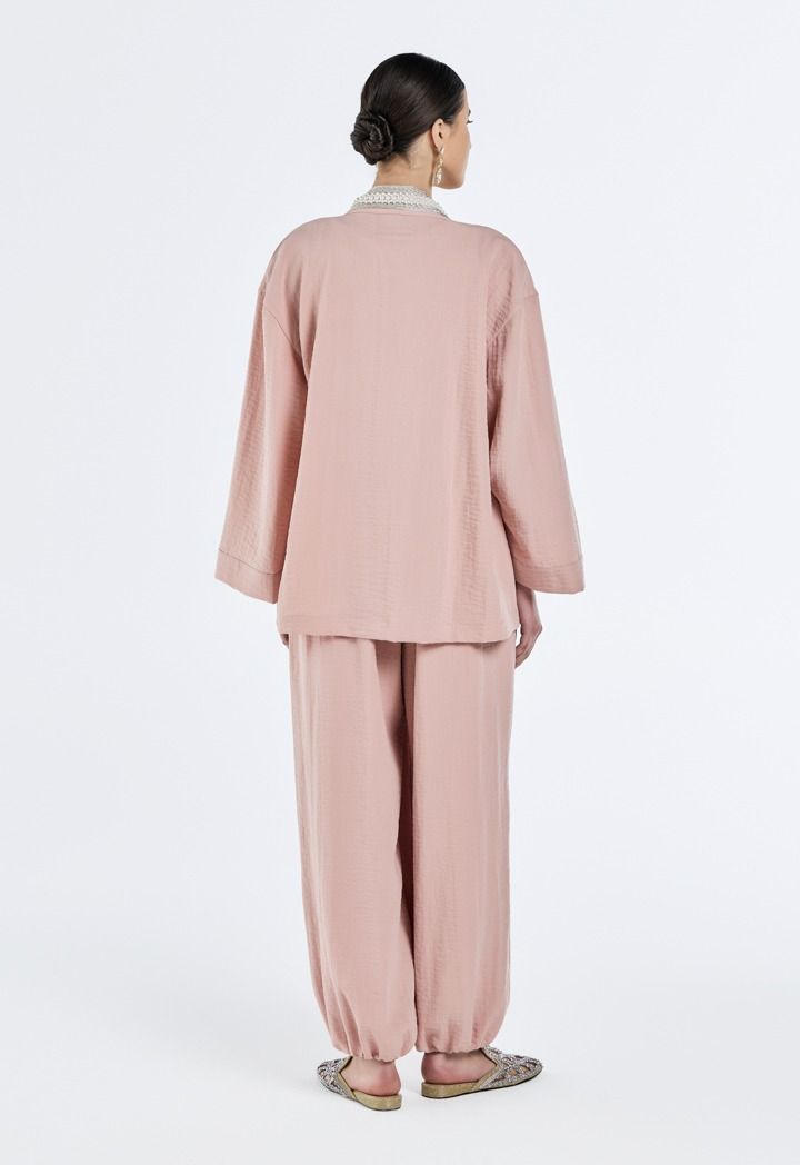 Pearl-Embellished Crinkled Kimono- Ramadan Style |