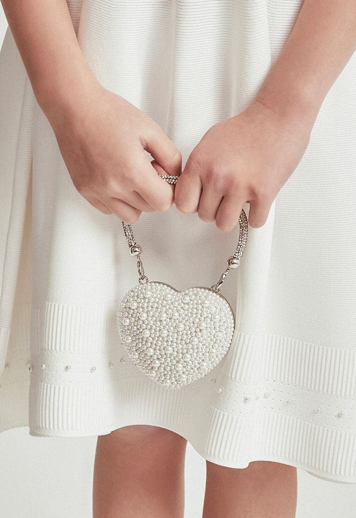 Lush pearl-covered heart with crystal chain strap-a sweet mini marvel for your little girl magical adventures.