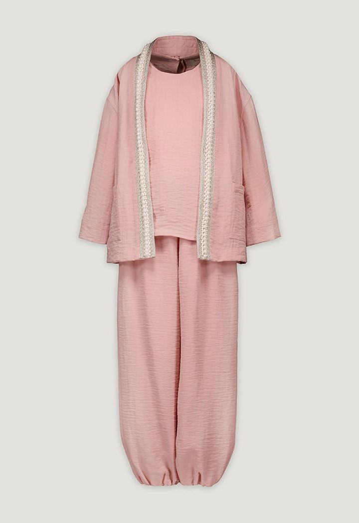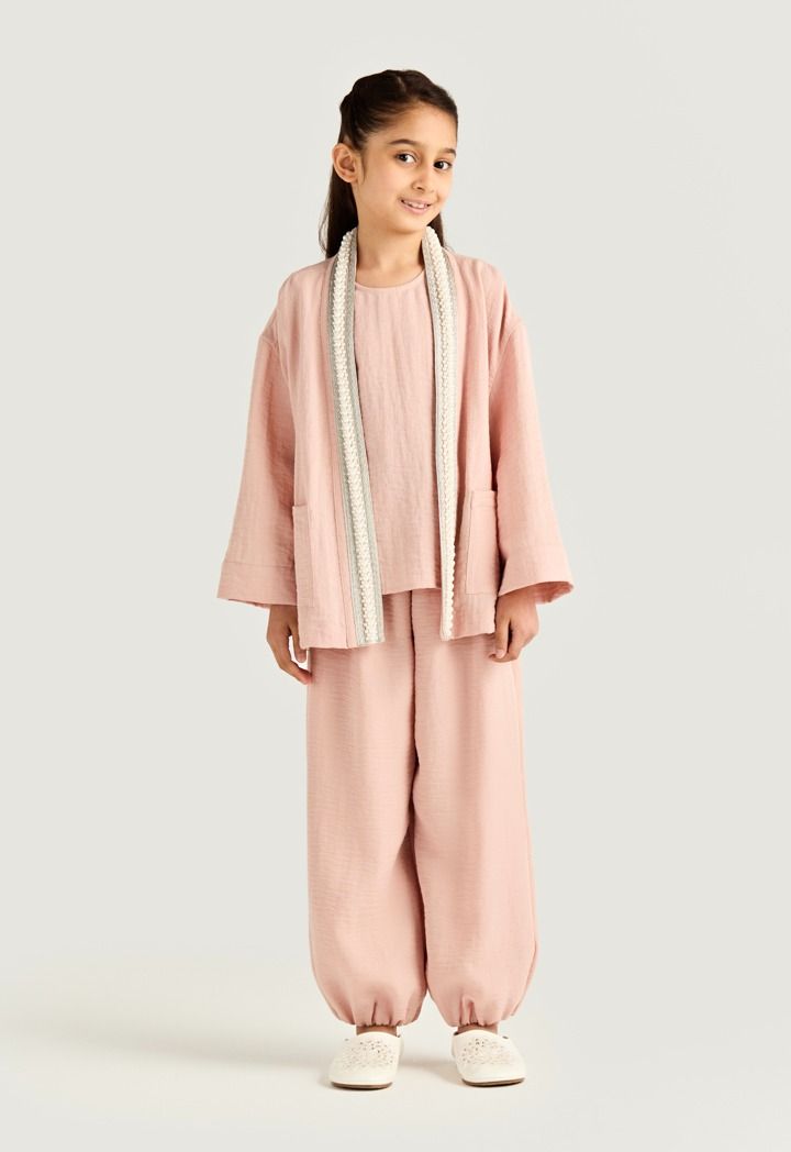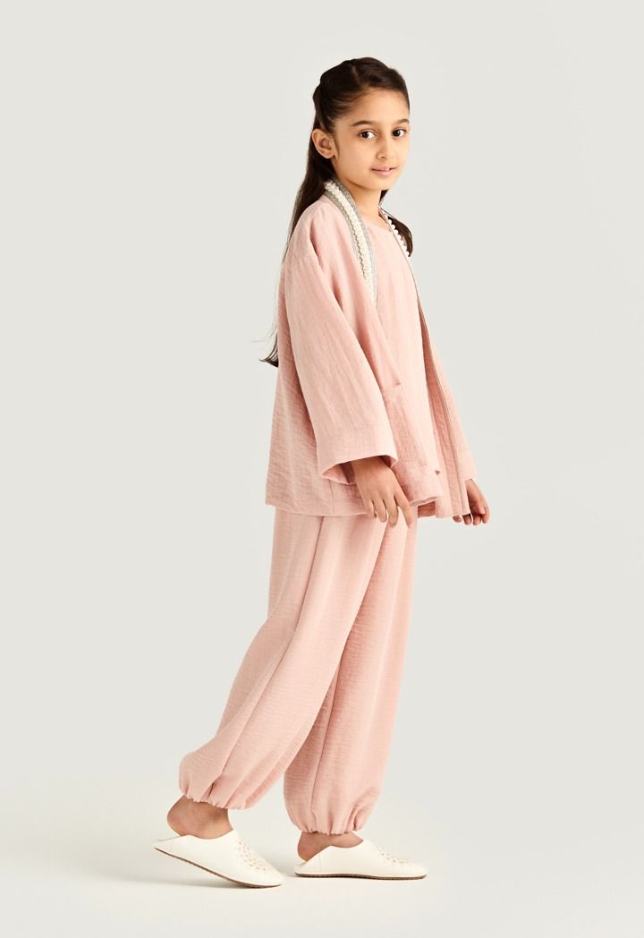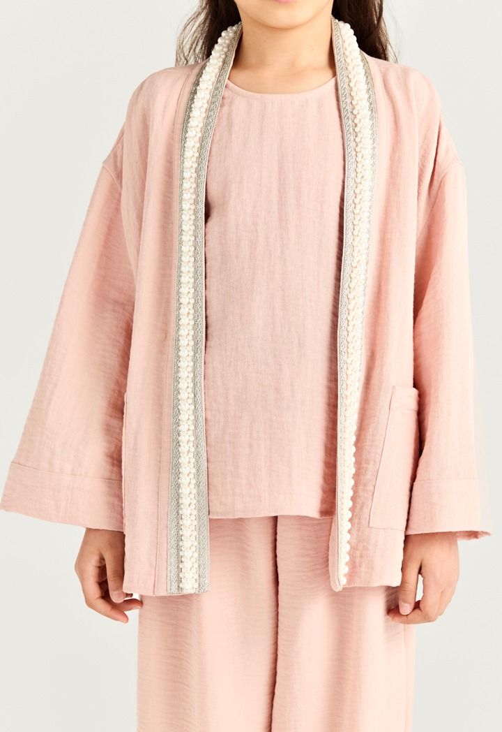 Elegant comfort meets timeless charm-the pearl trim relaxed set is made for every girl's graceful moments.
