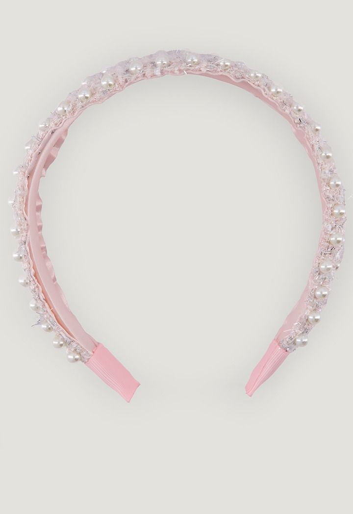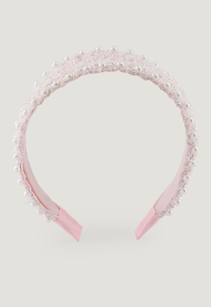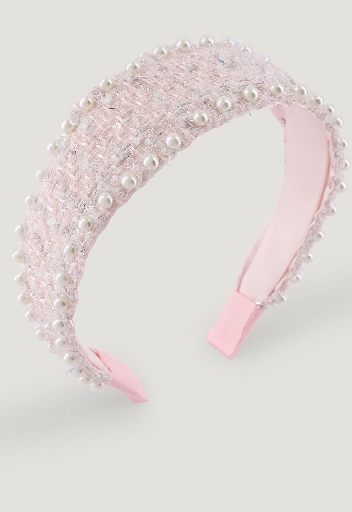 Fluffy tweed headband with shimmering pearls-delicate luxury and textured elegance for the ultimate girly glam.