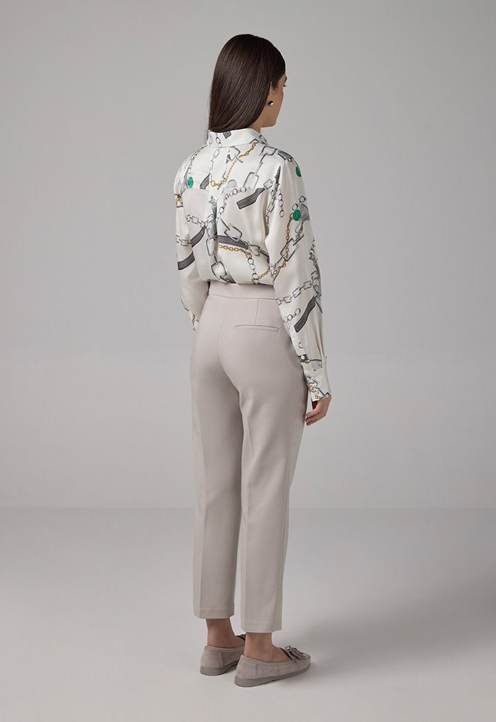 Add to your formal clothing collection a smart update with this Peg Leg Trouser. It features side pockets and Side Zipper and a hook closure.