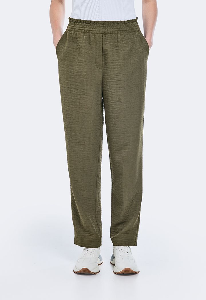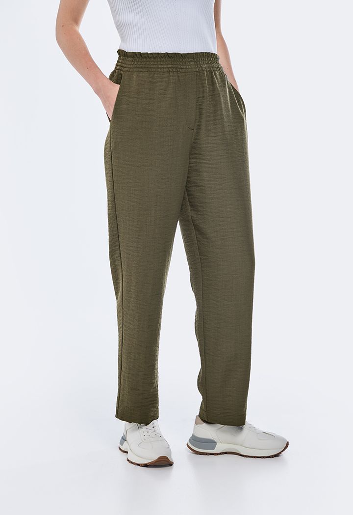 Design: Solid, High-Waist, Side Pockets, Crinkled, Peg Leg