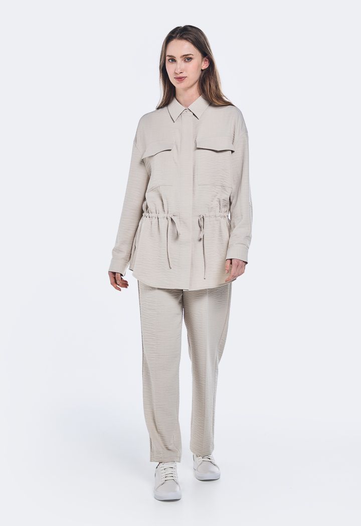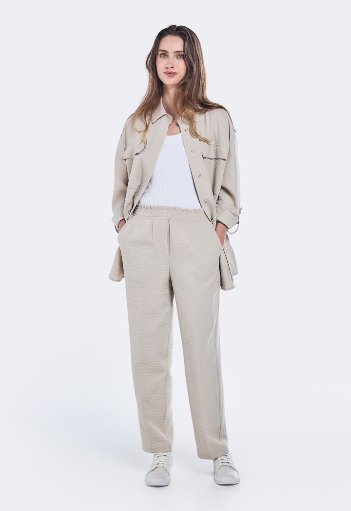 Design: Solid, High-Waist, Side Pockets, Crinkled, Peg Leg