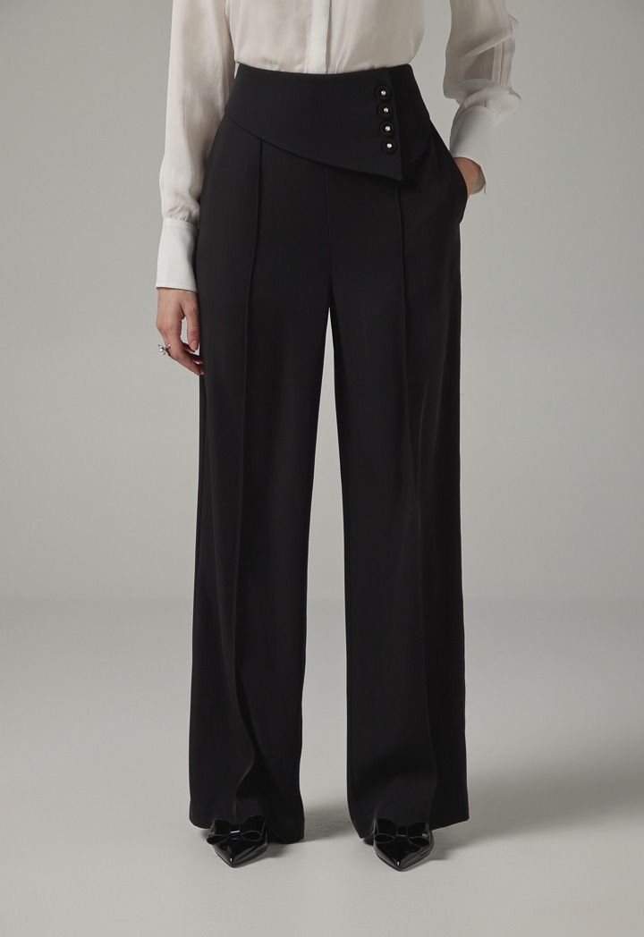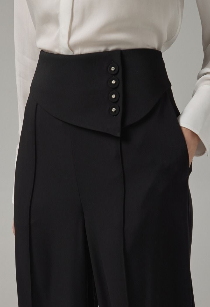 Design: Basic, Wide Leg, Buttons Details, Pin Tuck At Front, Pockets