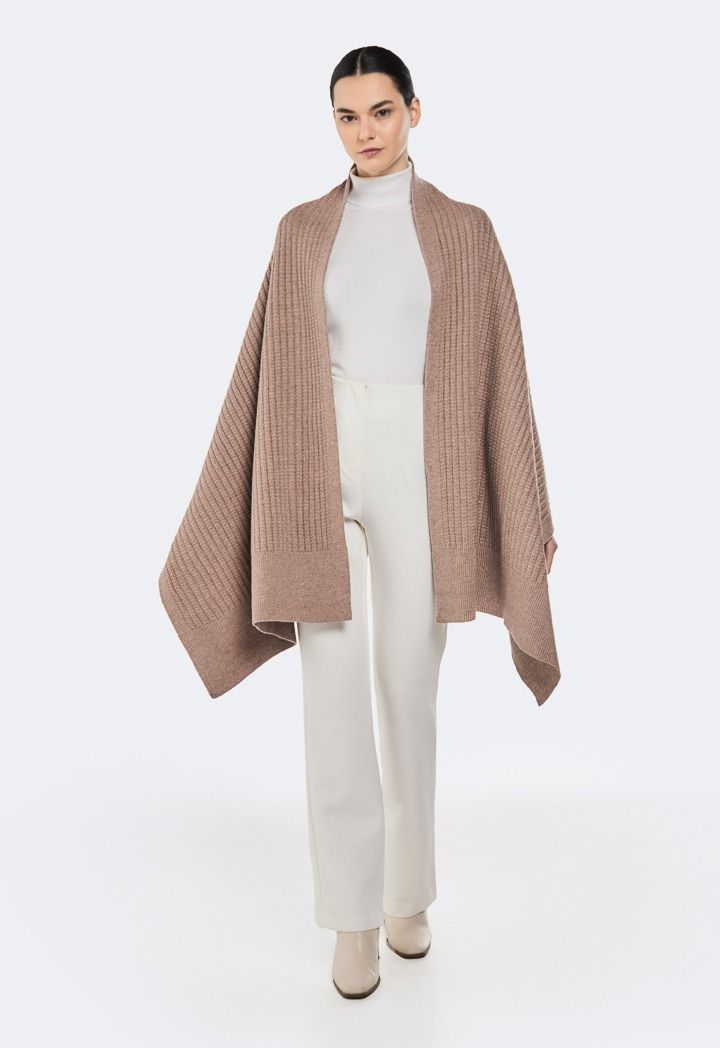 Improve your wardrobe with our chic, elegant cape. This piece is perfect for any occasion and a must-have for the fashion-forward.