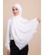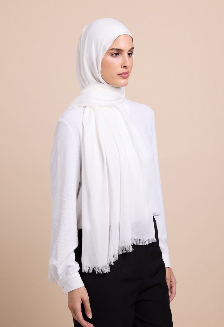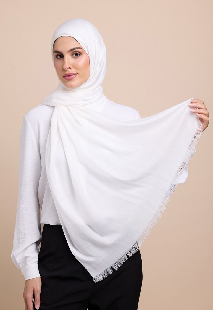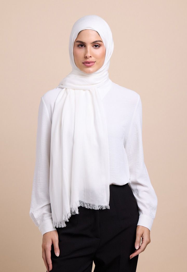 A practical hijab design that is also multipurpose; you can wear it as a hijab or as a shawl.