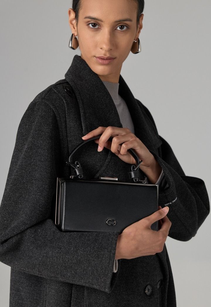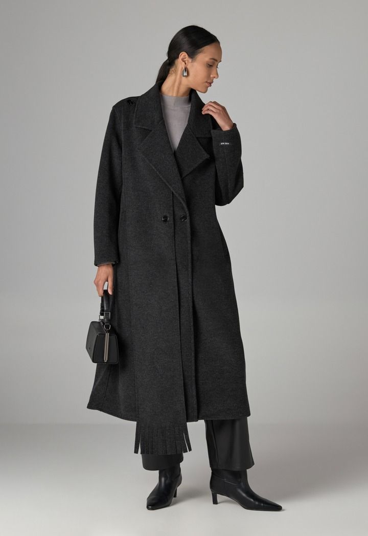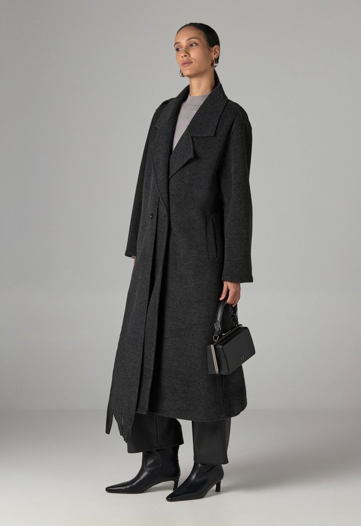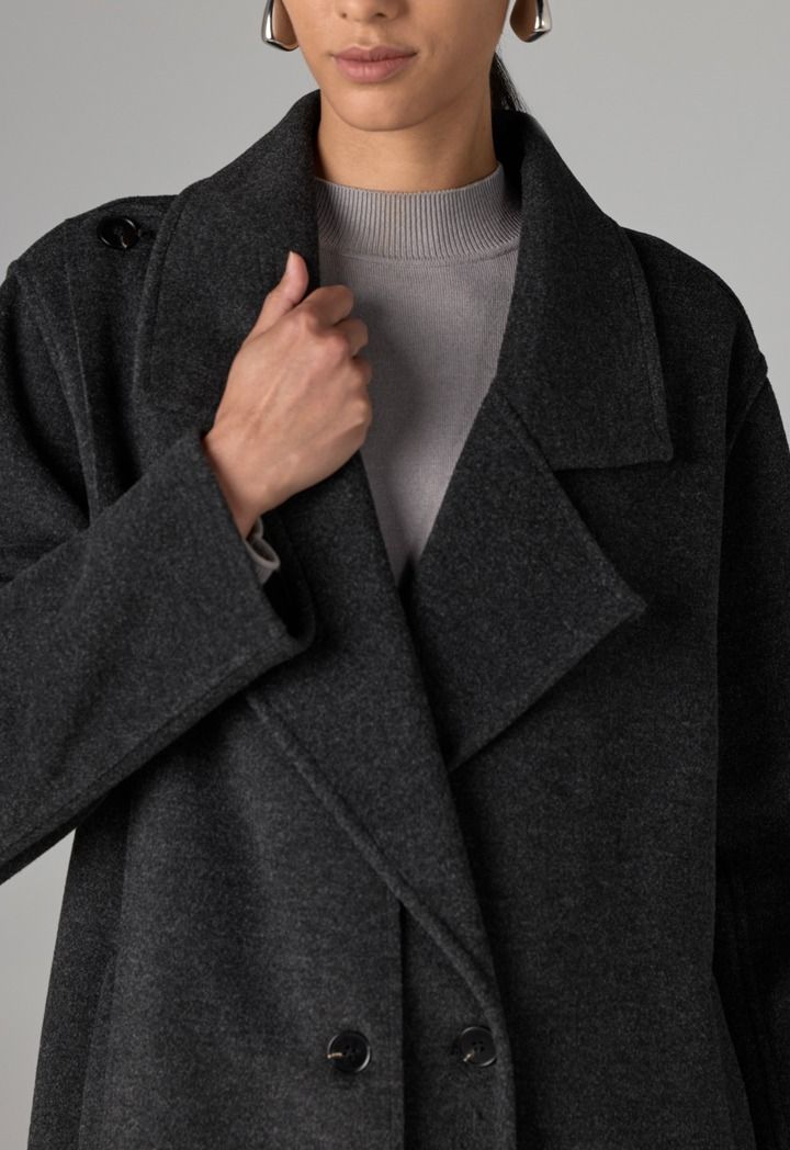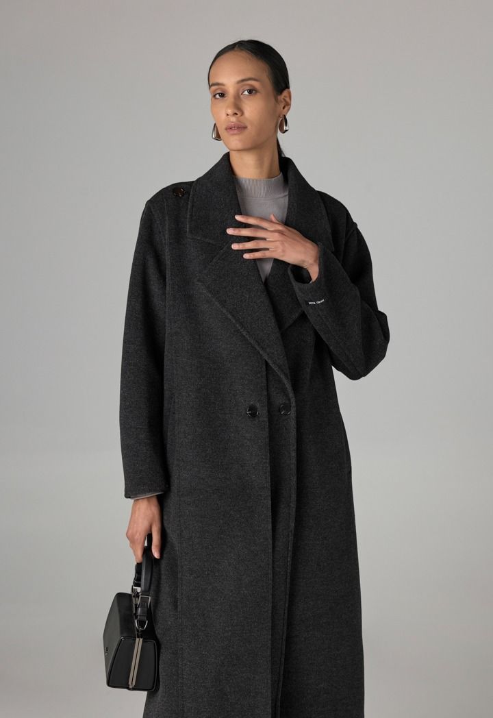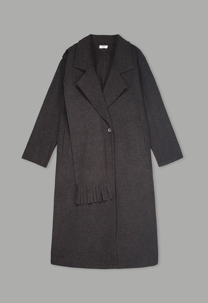 A classic coat, featuring a solid wool design and a matching design scarf.