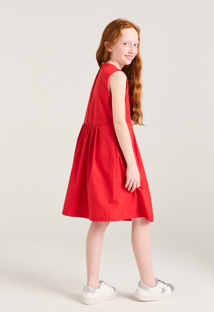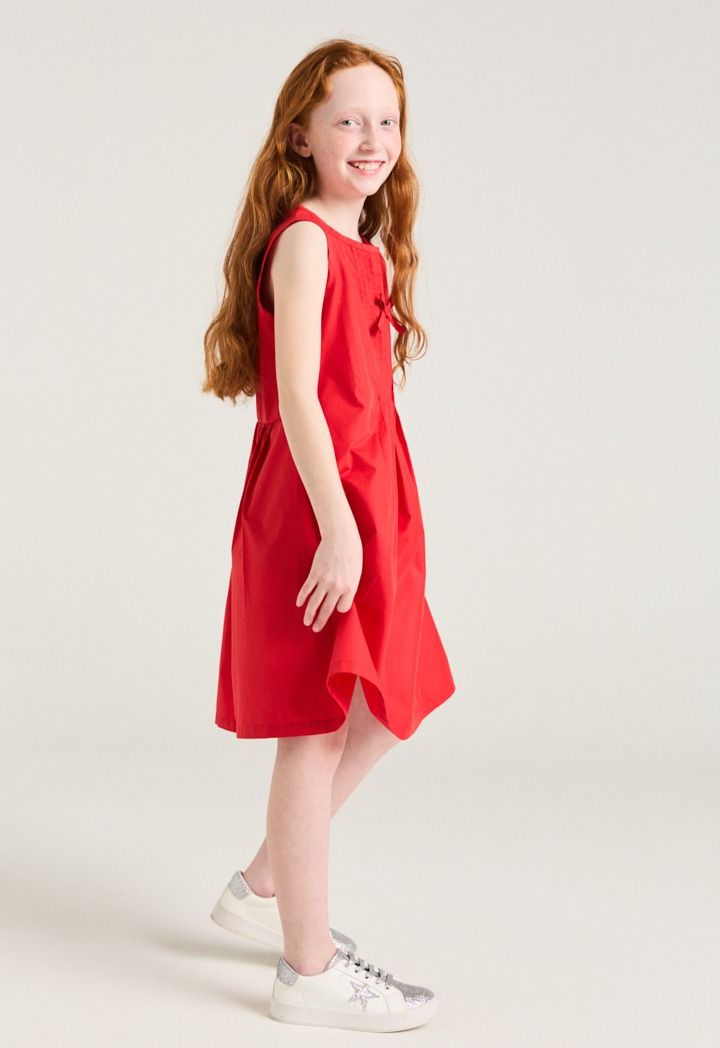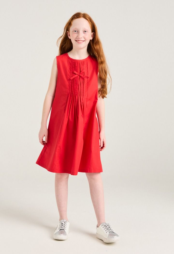 A sleeveless pleated kids dress, simple and comfortable, offering both style and ease for every moment.