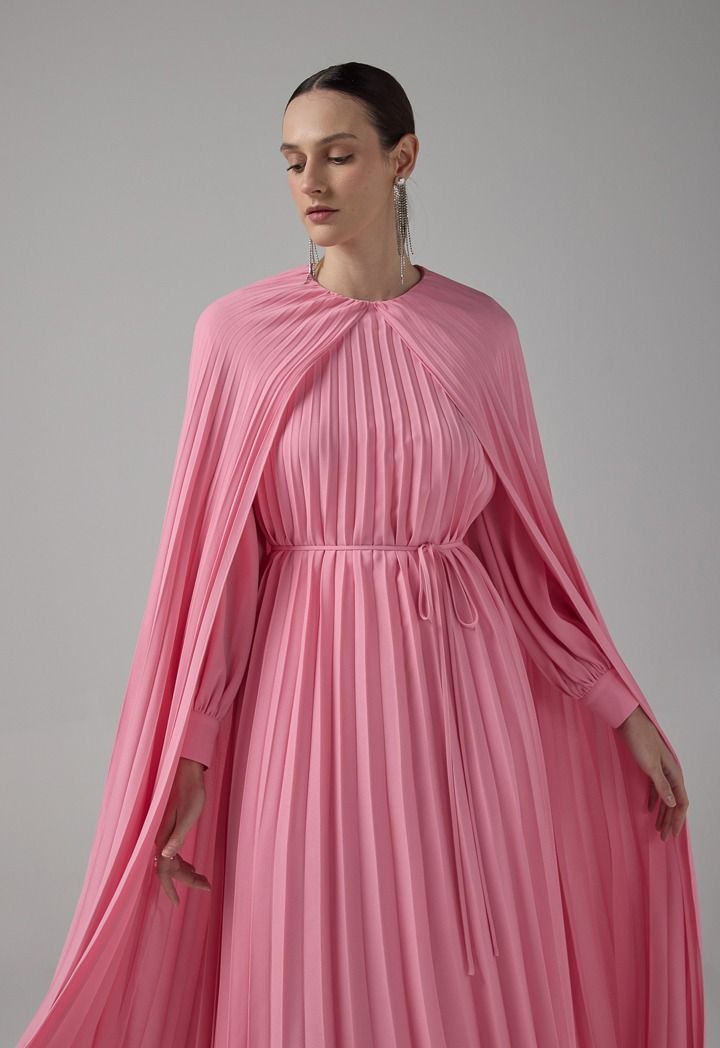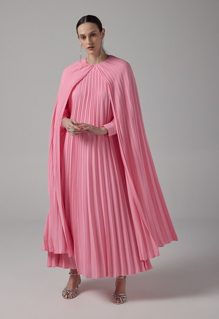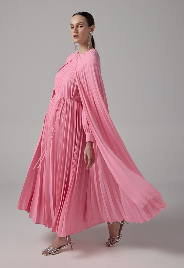 Pleated Cape Details Maxi Dress |