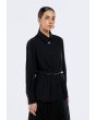 Redefine sophistication, the Pleated-Detail Belted Shirt combines elegance with a modern silhouette.