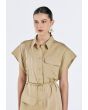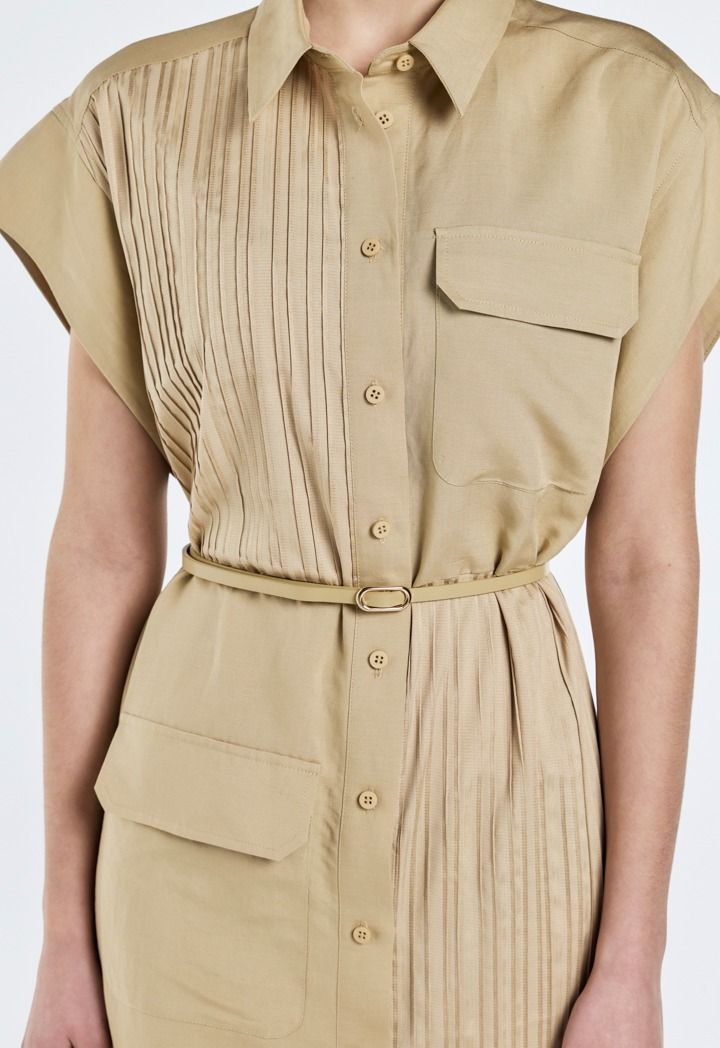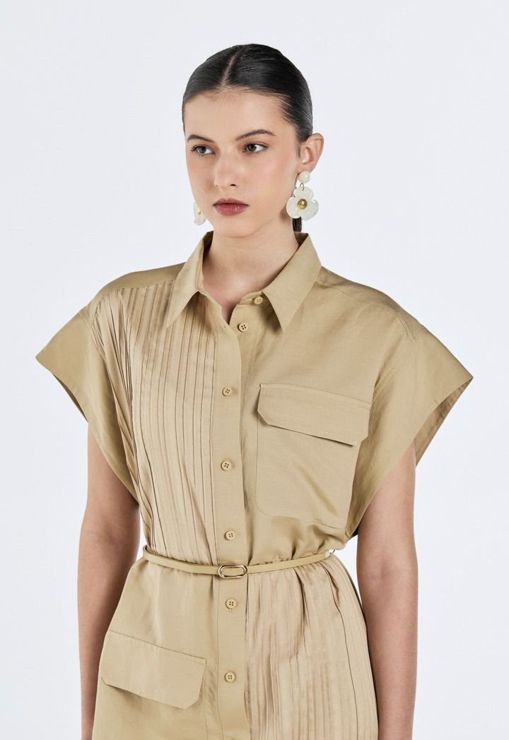 Design: Solid, Pleated Details, Flap Pockets, PU Leather Belt