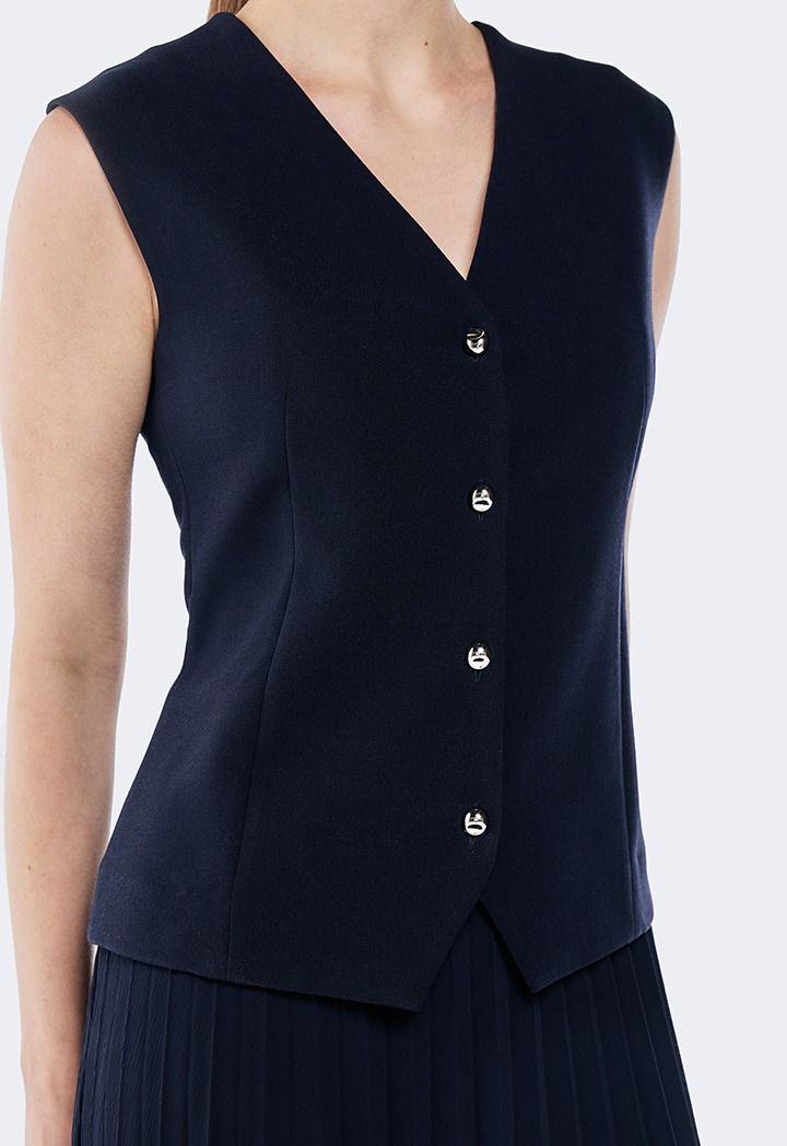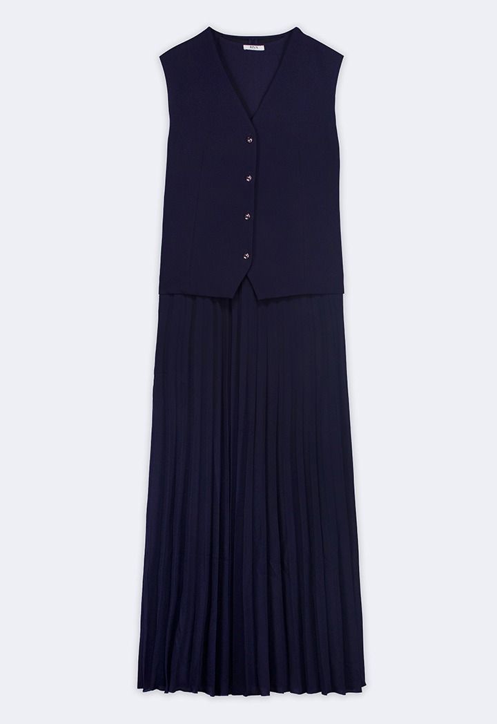 Design: Solid, Pleated, Attached Lining, Attached Vest
