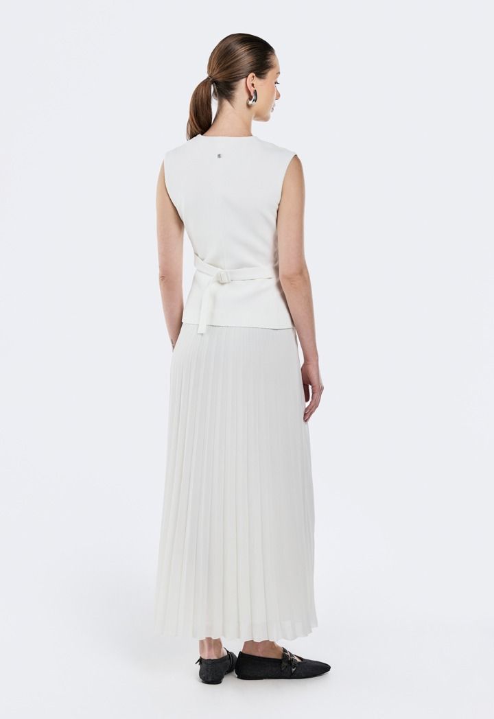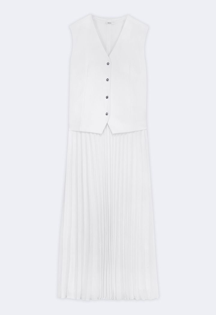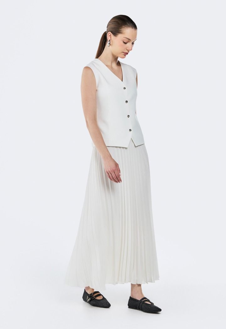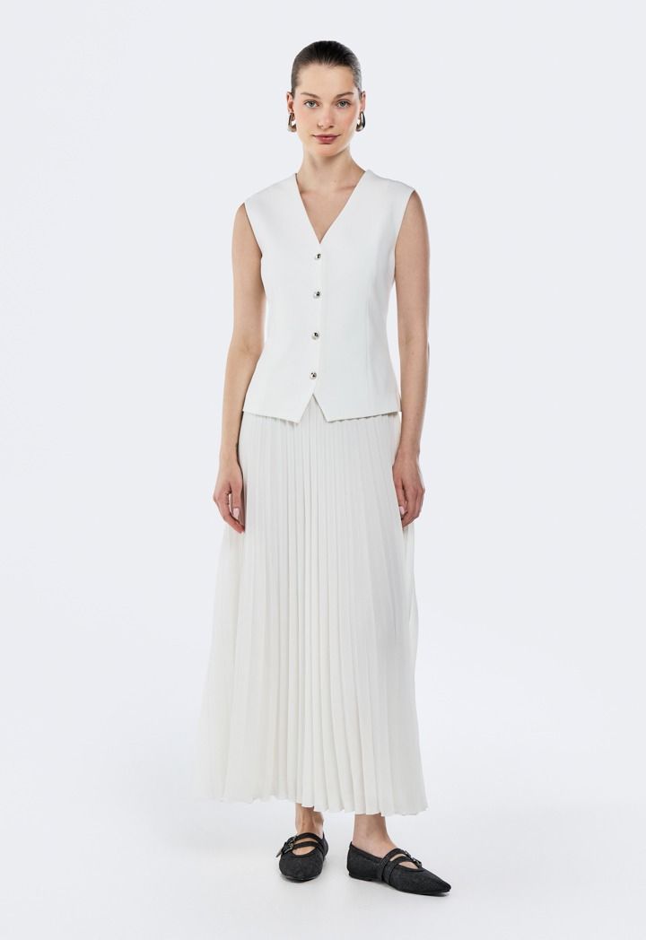 Design: Solid, Pleated, Attached Lining, Attached Vest