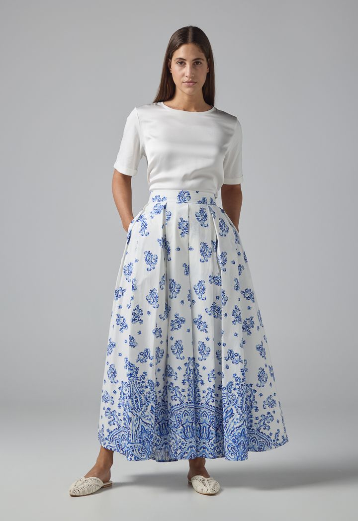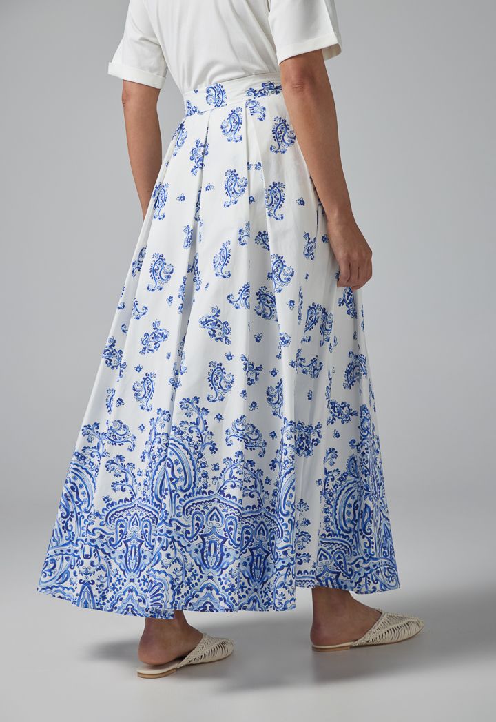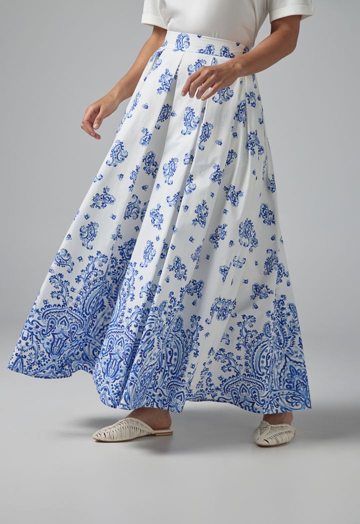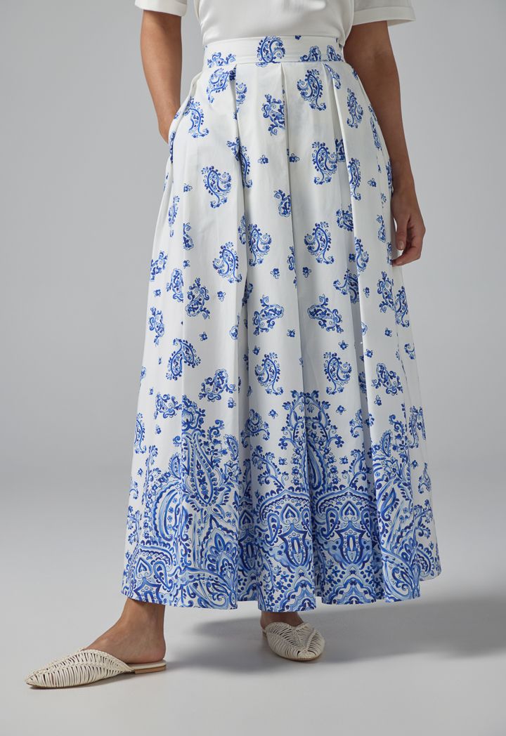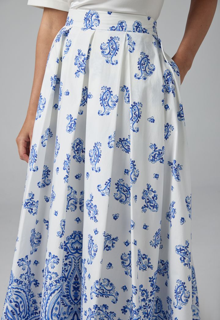 Pleated Flared Printed Maxi Skirt |
