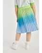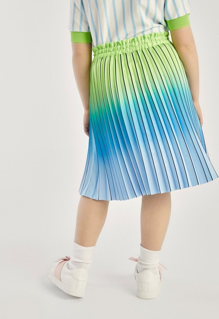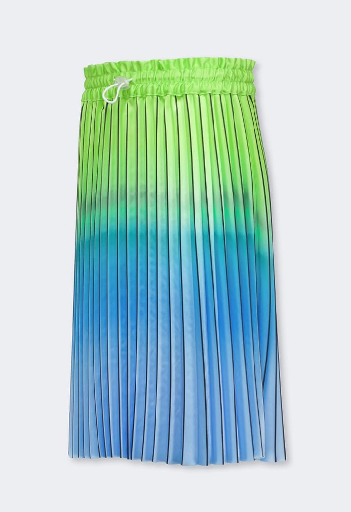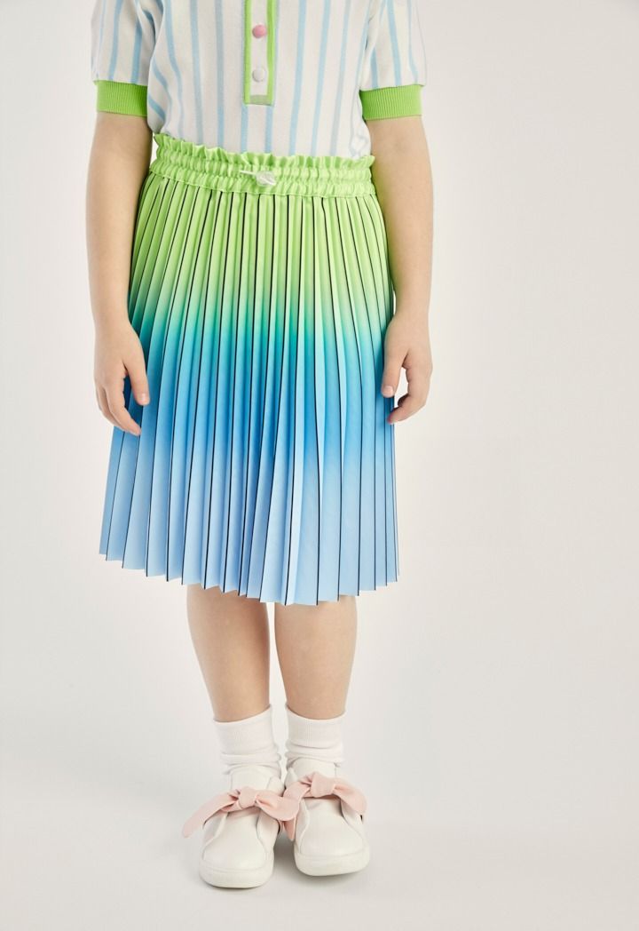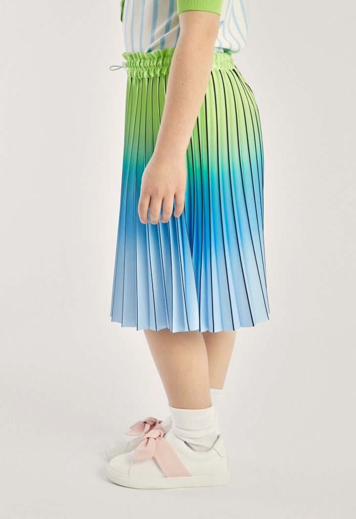 A stylish pleated skirt with beautiful gradient colors, featuring a flexible waistband and adjustable drawstrings.