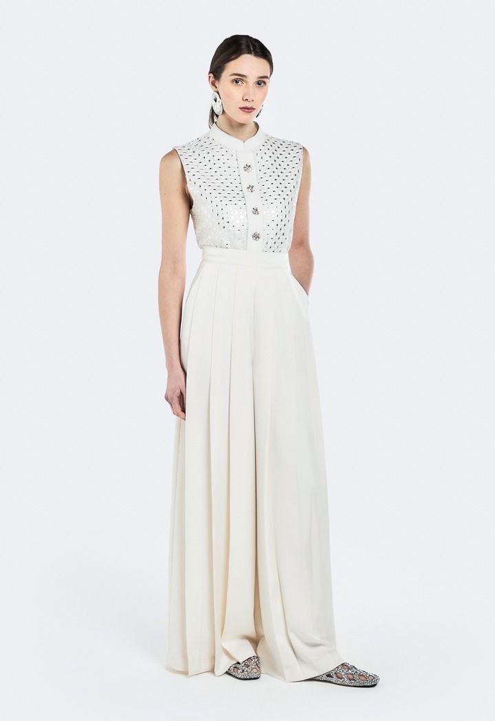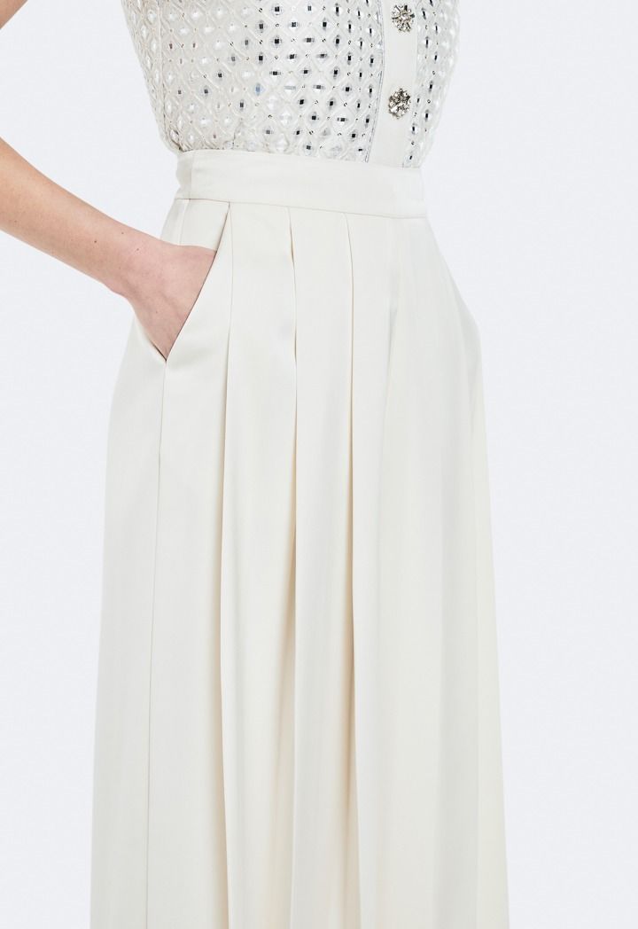 Design: Solid, Wide Leg, Pleated, High Waist, Attached Lining, Palazzo