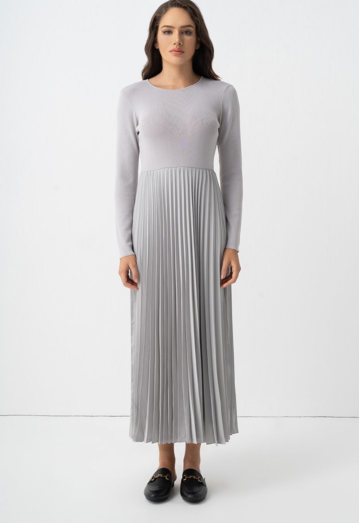 Pleated Long Sleeve Dress - Winter Style | Riva Fashion