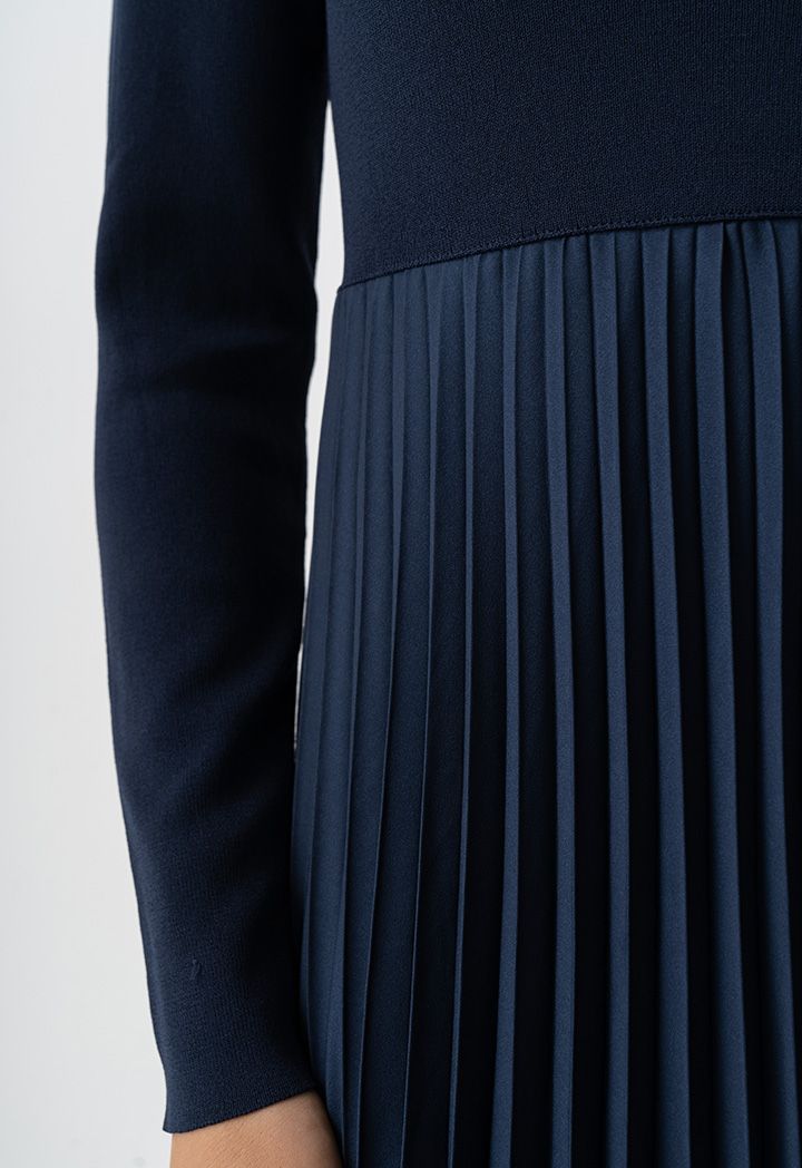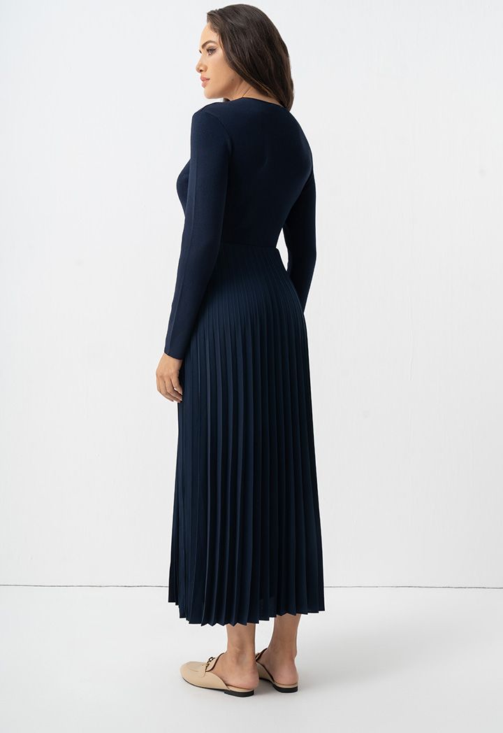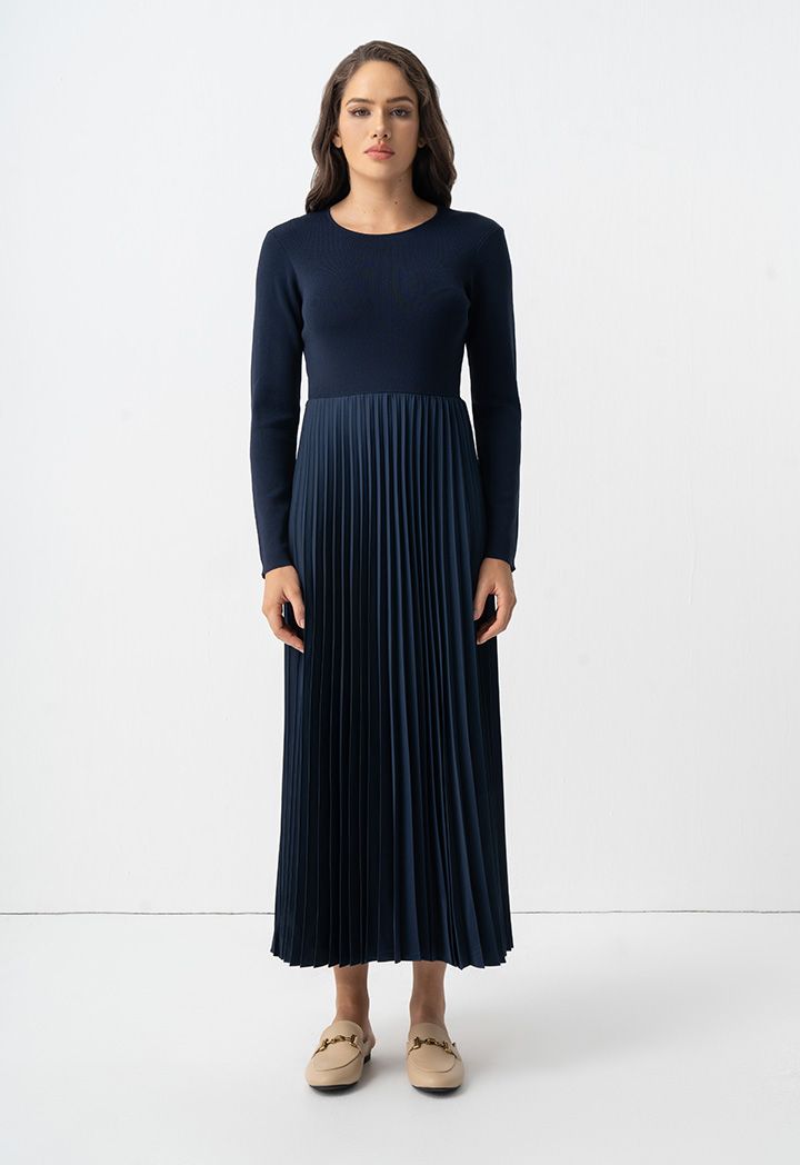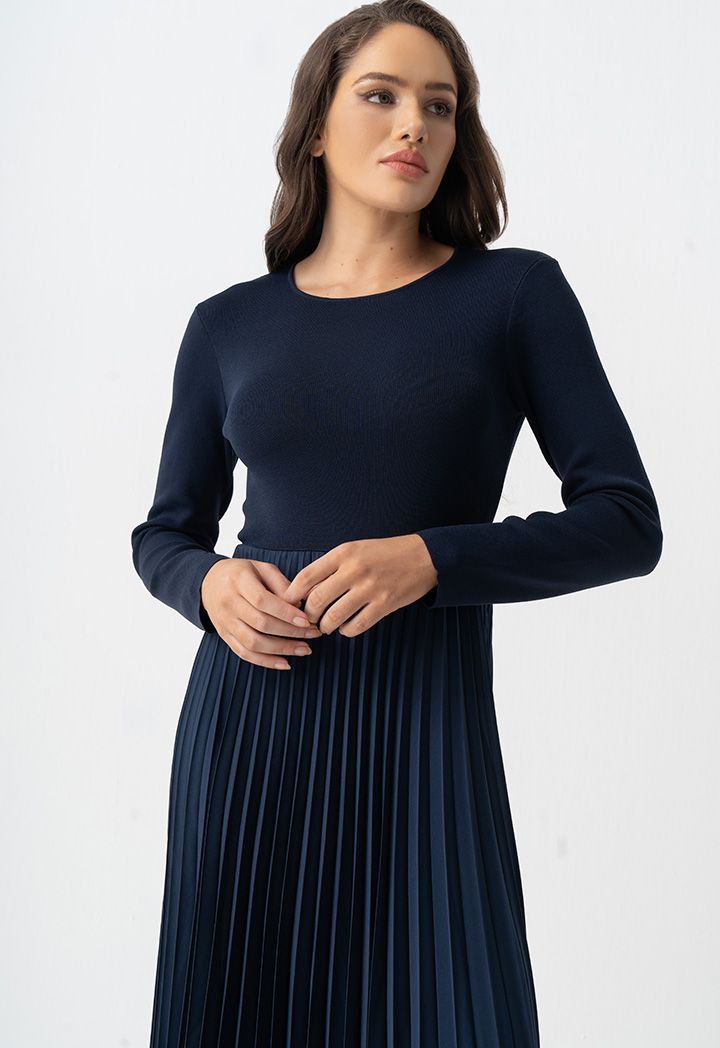 Pleated Solid Long Sleeve Dress |