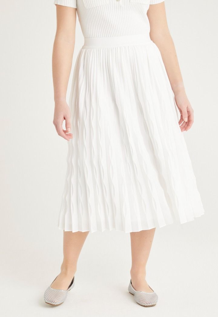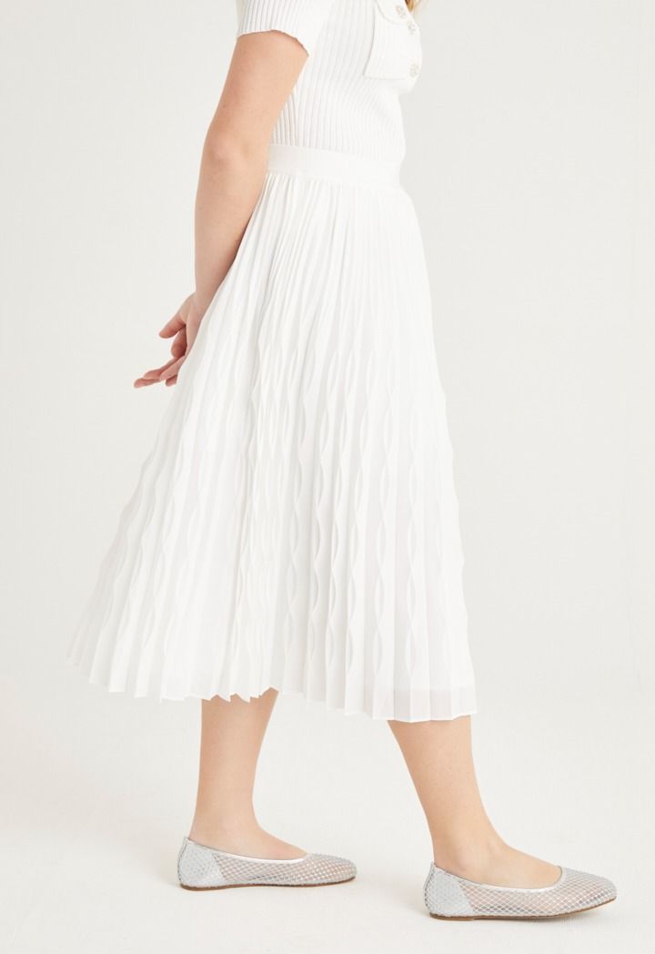 A solid skirt that features a pleated textured design with an attached inner lining.