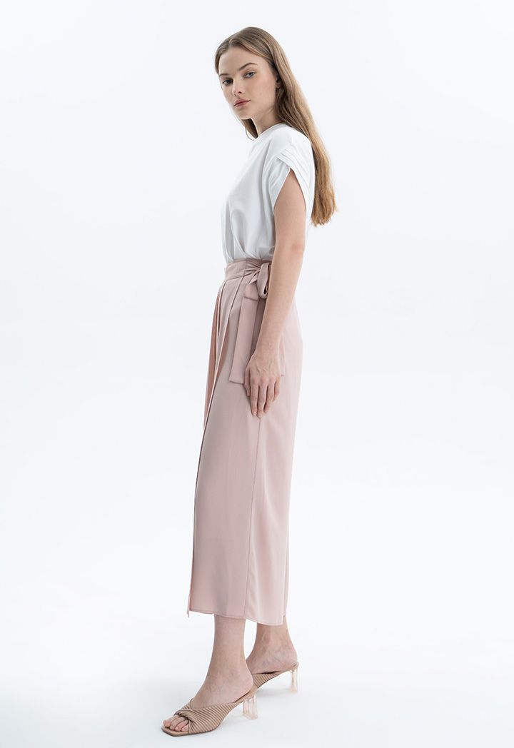 Pleated Wrap Solid Trousers |