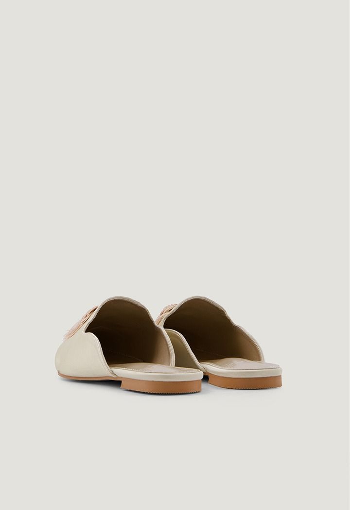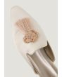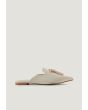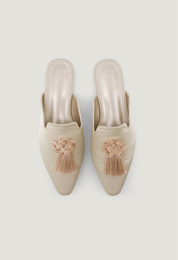 A pair of plain mules with simple touches, featuring a pointed toe and adorned with tassels that give it the perfect amount of elegance.